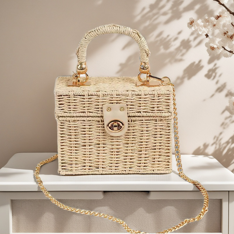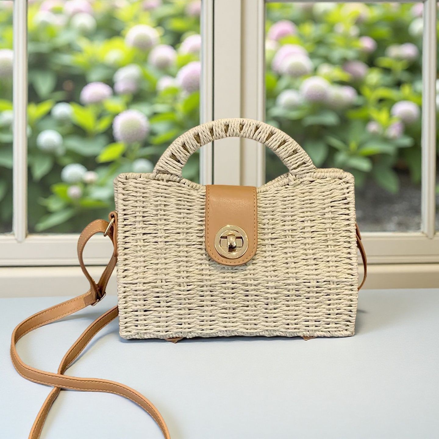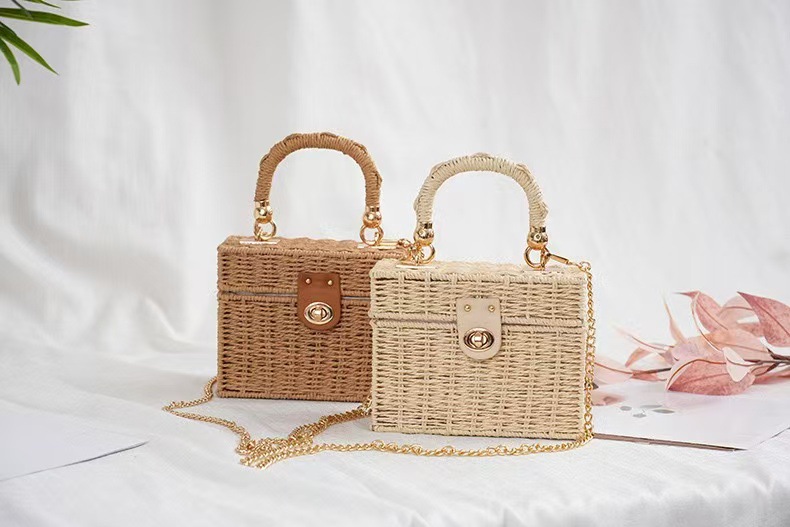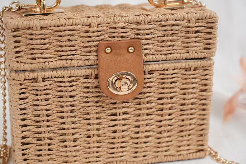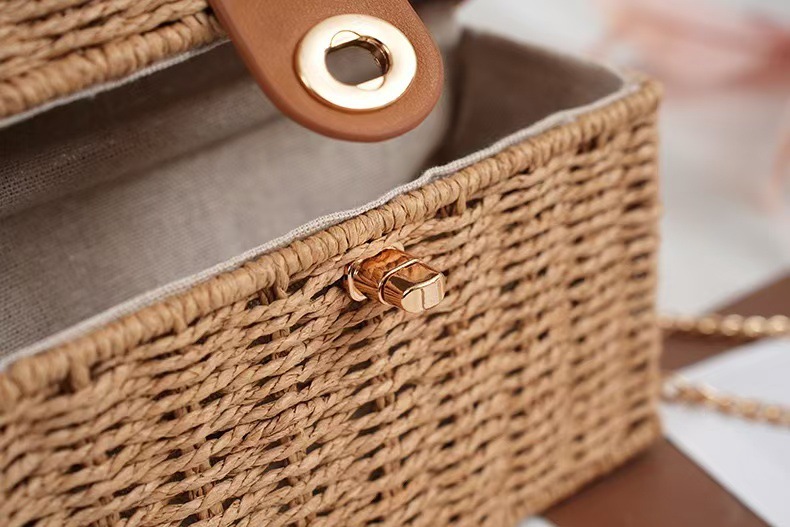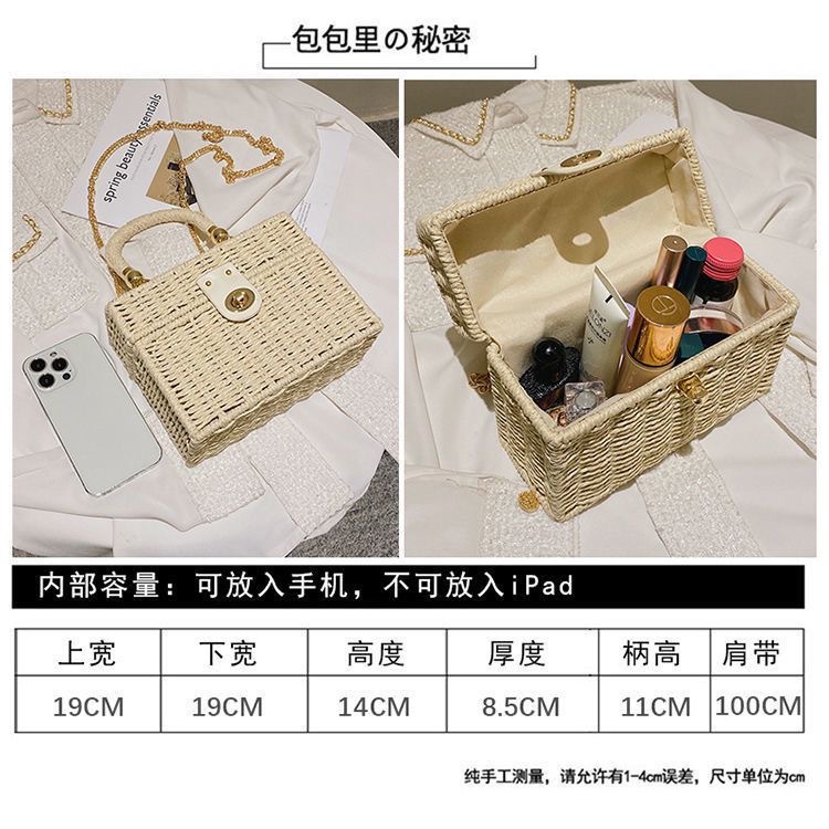 外贸新款代发高级感精致草编包斜挎手机包可手提锁扣款度假沙滩包