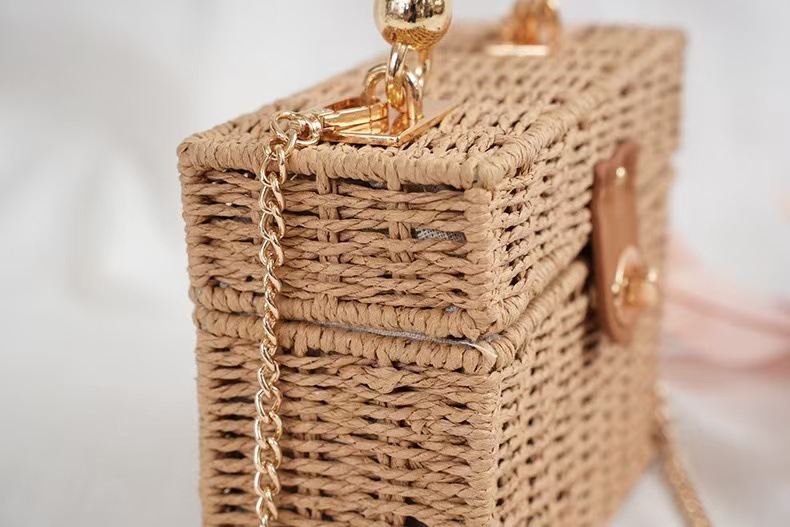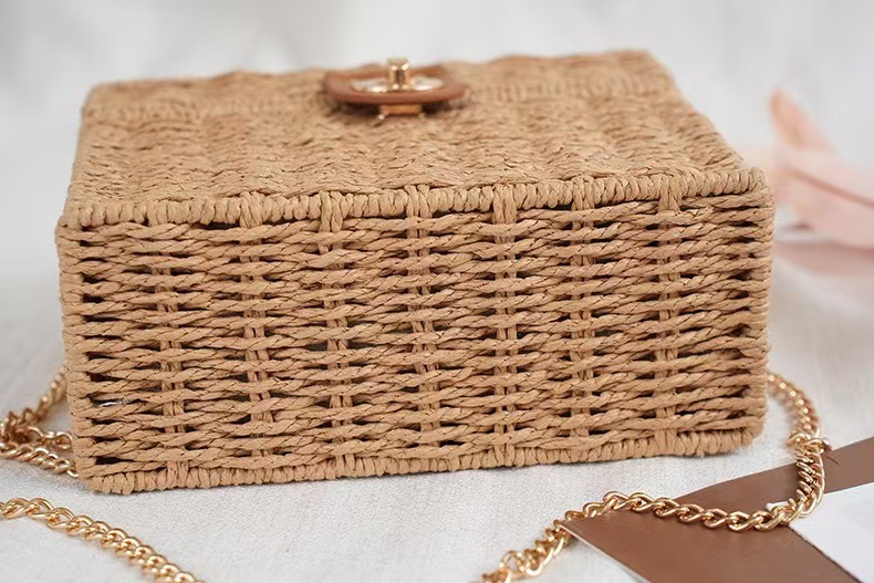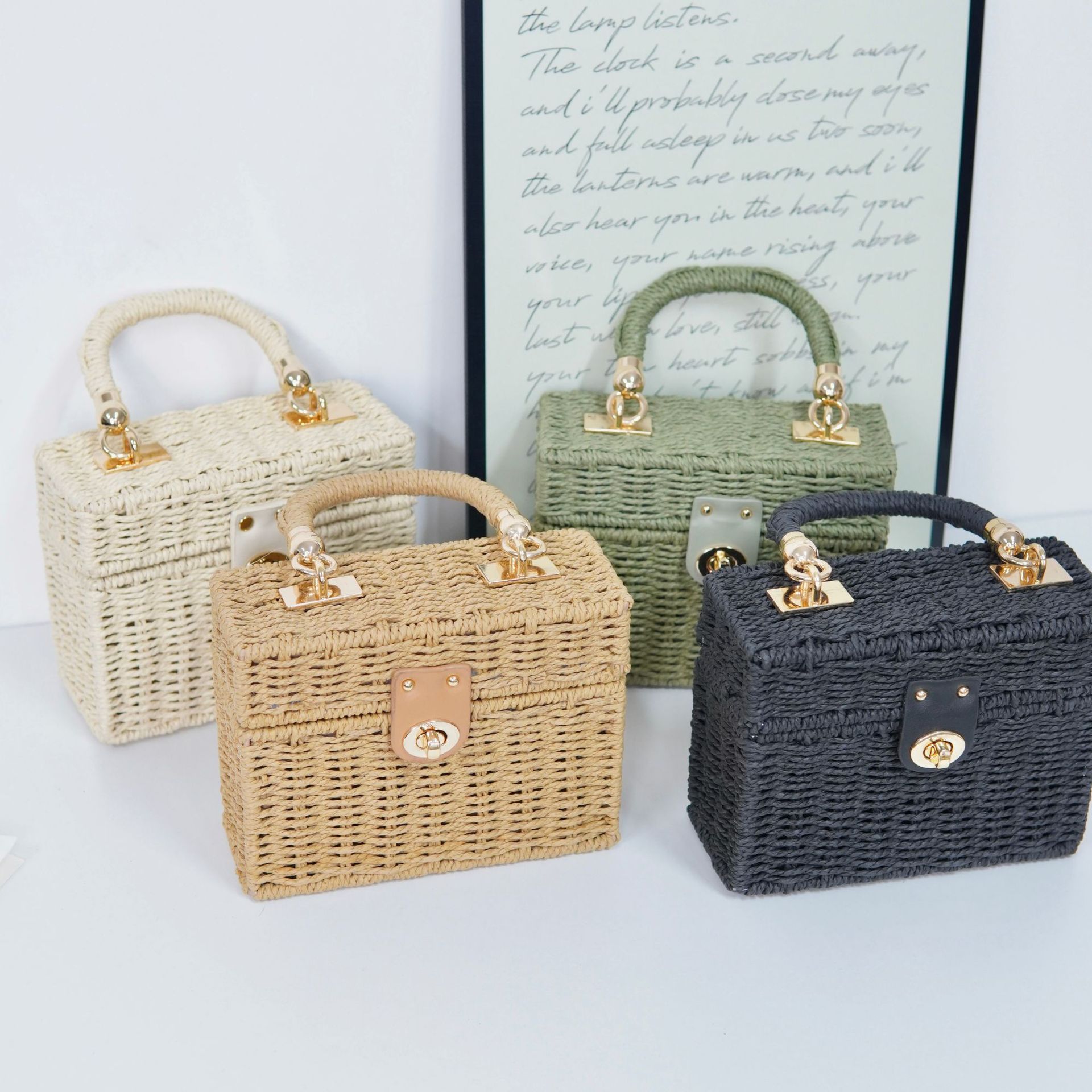 レトロわらバッグ夏新ファッションビーチ女性のバッグショルダークロスボディバッグハンドバッグボックス小さな正方形のバッグ