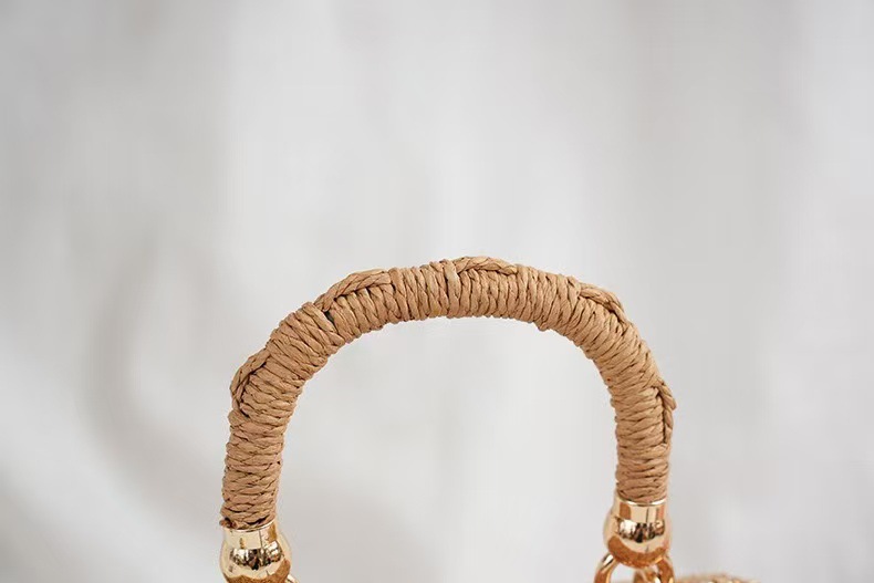爆発的な高級感草編みバッグ軽贅沢竹節手提げバッグ手作りバッグ鉄フレーム斜めショルダーバッグ