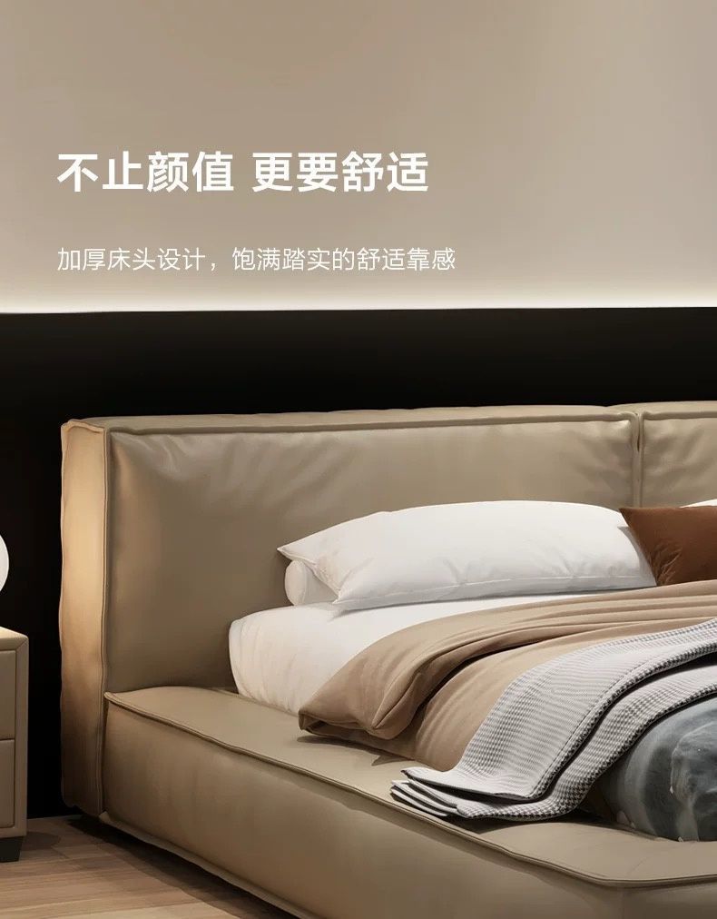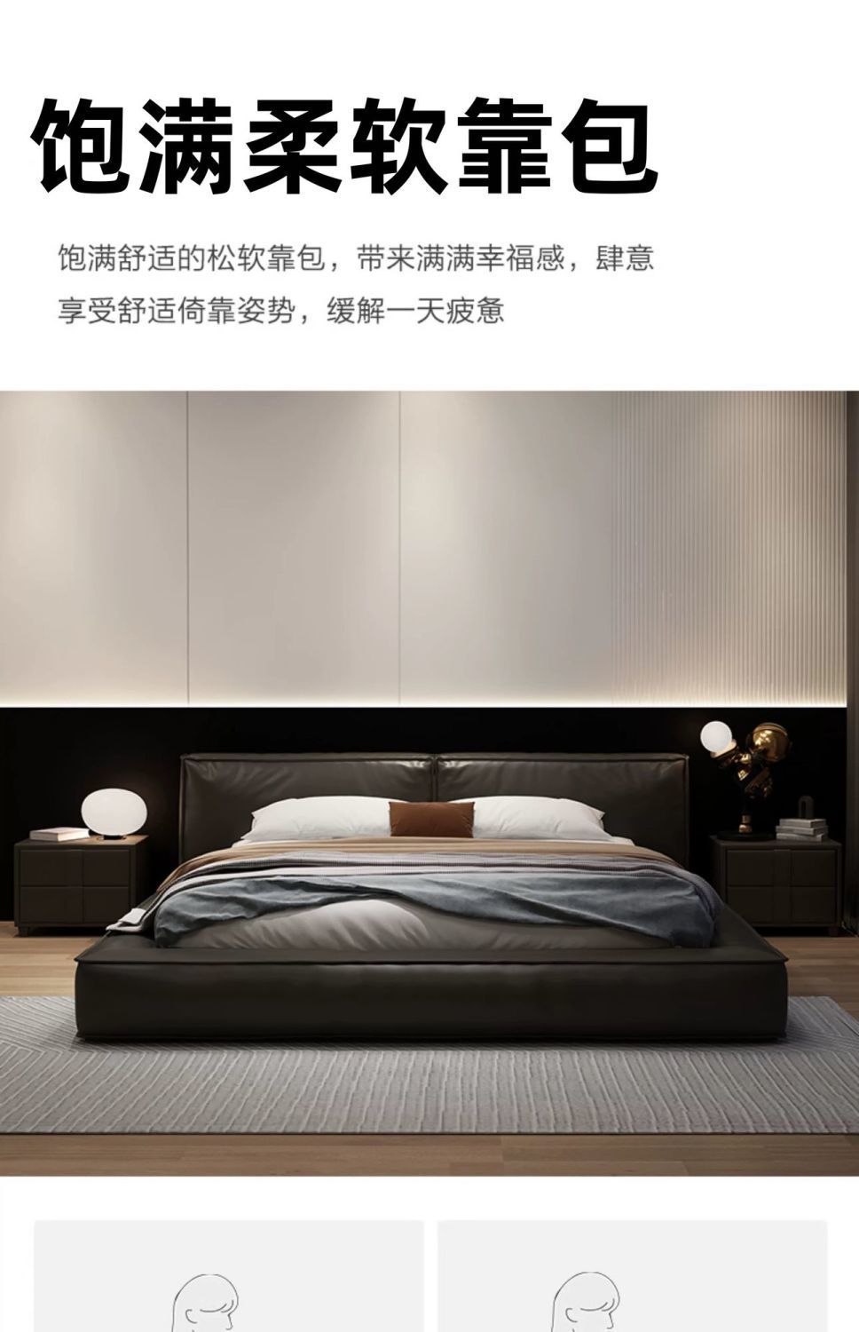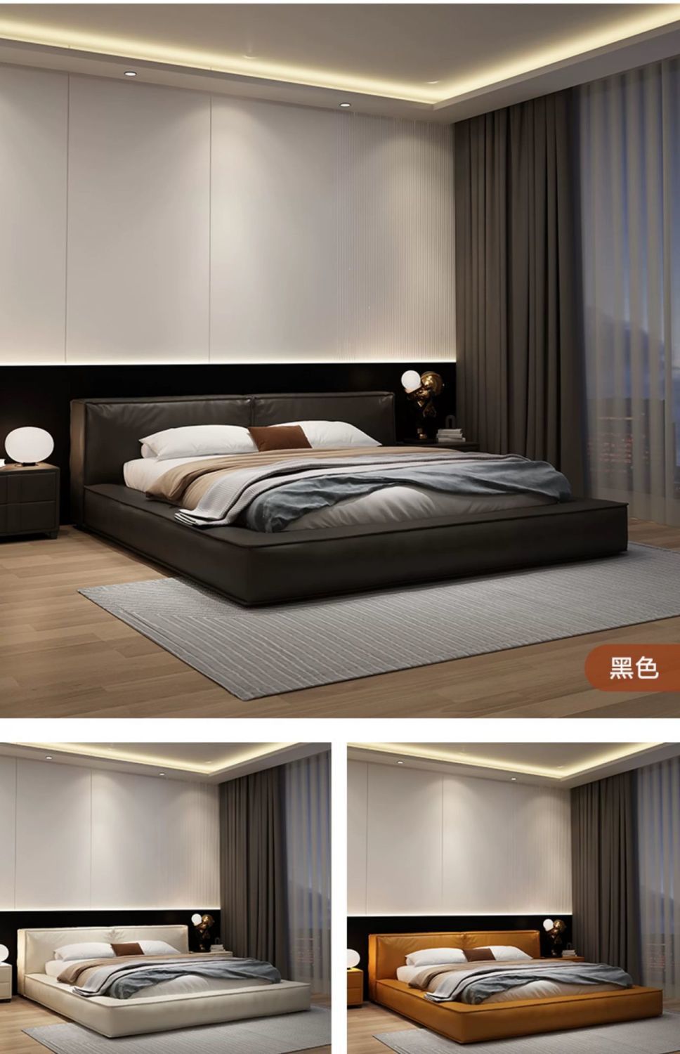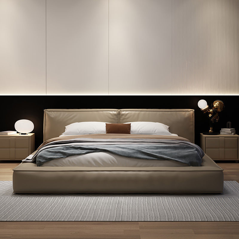 本革 ミニマリスト モダン シンプル 象の耳 イタリアンライト 高級収納 ウェディングベッド マスターベッドルーム ダブルベッド ダブルベッド