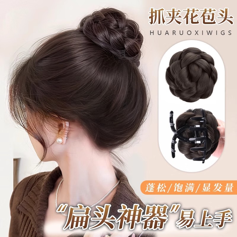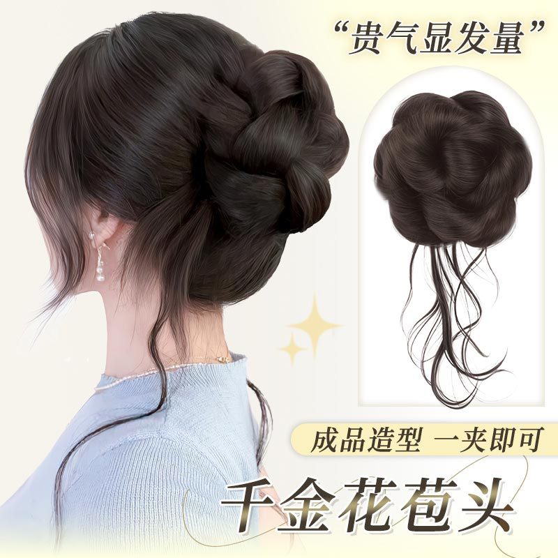 千金竜須丸頭かつら髪輪シミュレーション髪自然ふわふわ盤髪神器花かつら花つぼみ頭
