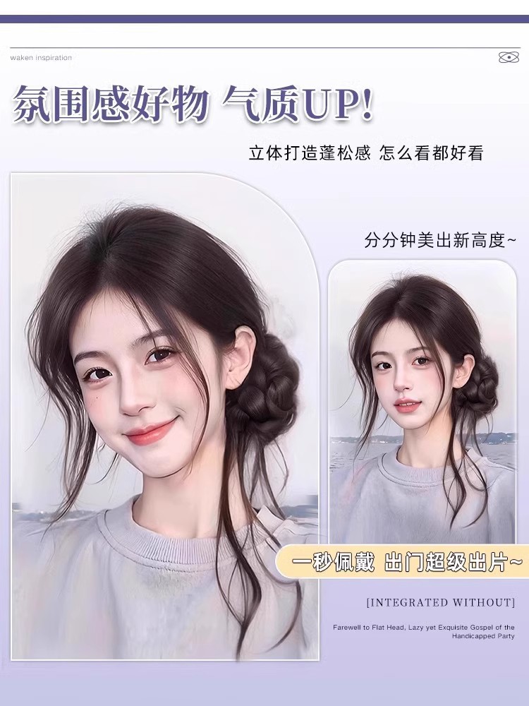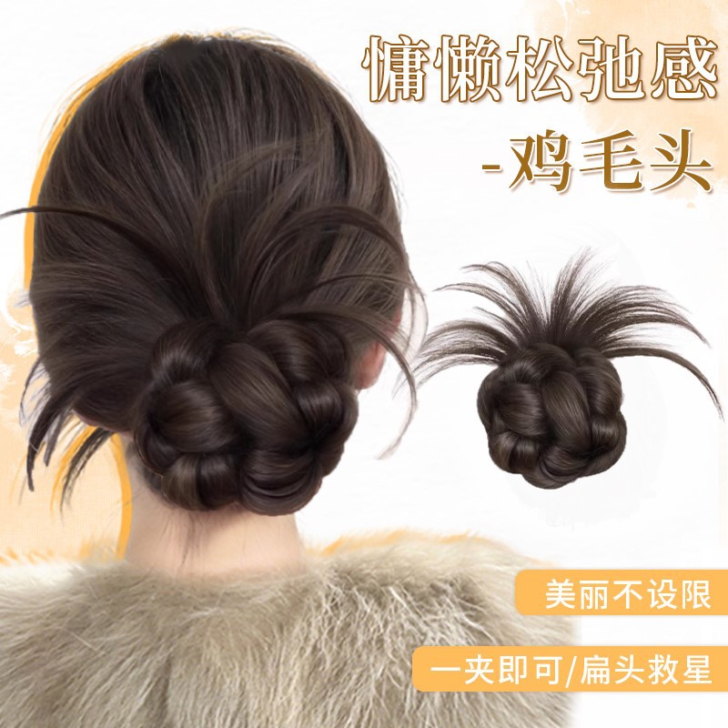 Ji Jingyiと同じスタイルの千金花のつぼみ鶏毛羽根ペニンギューヘッドボールヘアウィッグ女性用クリップ付き人毛を模倣した自然なヘアスタイル