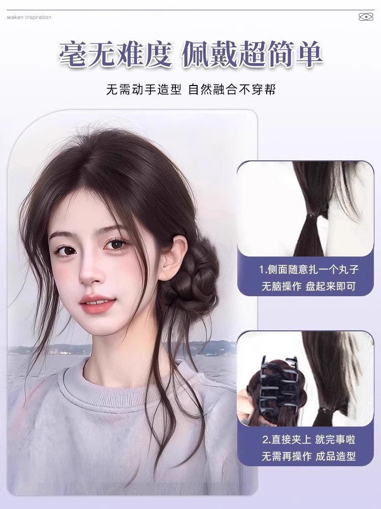 假发辫子女彷真发簪新中式假发侧边抓夹发饰古风汉服旗袍侧马尾辫