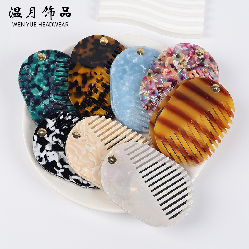 韓国レトロ幾何学酢酸数字韓国版カラー通情櫛女性酢酸模様髪櫛鏡卸売り