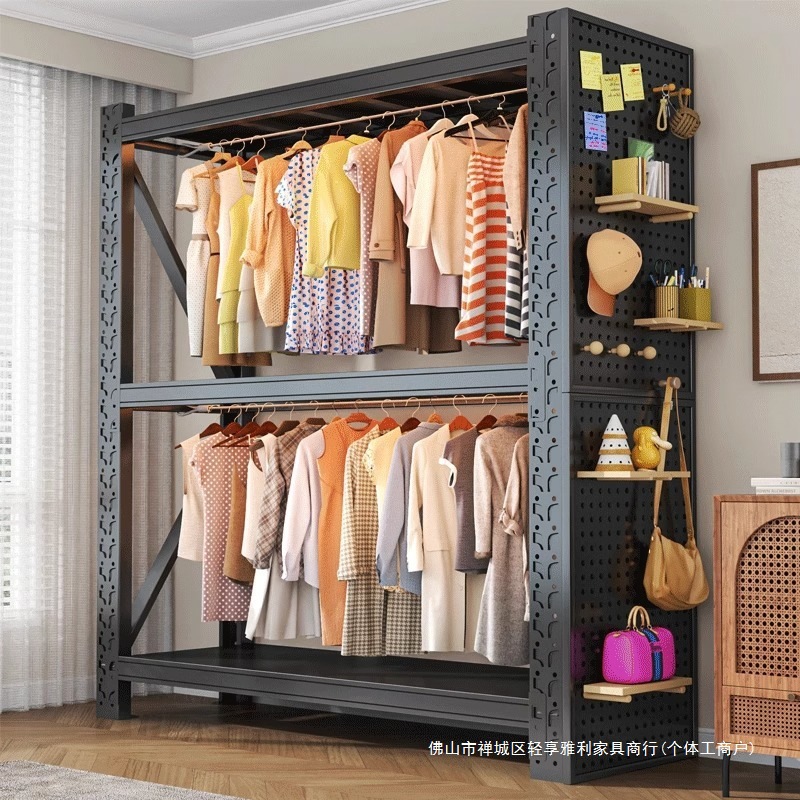 货架衣柜简易组装开放式家用卧室收纳架钢制洞洞板金属角钢挂衣架