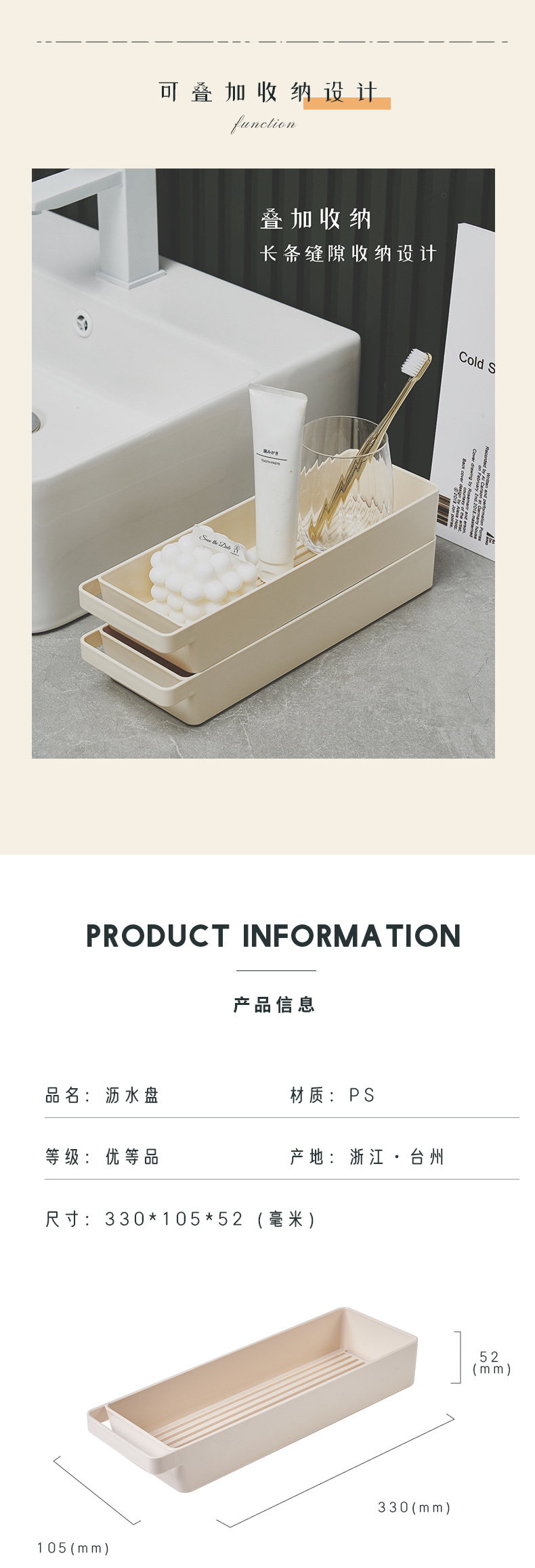 ワンピース発送対応、クリエイティブなデスクトップオフィス雑貨、化粧品、寮、PS素材、ニッチな収納トレイ、収納ボックス、多機能