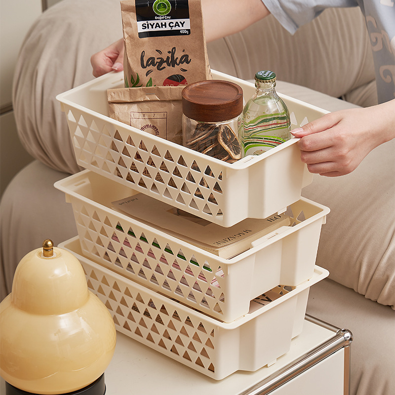 一件代発対応、重ねて使える卓上収納ボックス、中空デザインの家庭用収納バスケット、シンプルなデザインで耐久性のある収納かご
