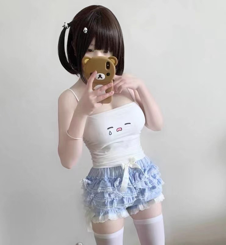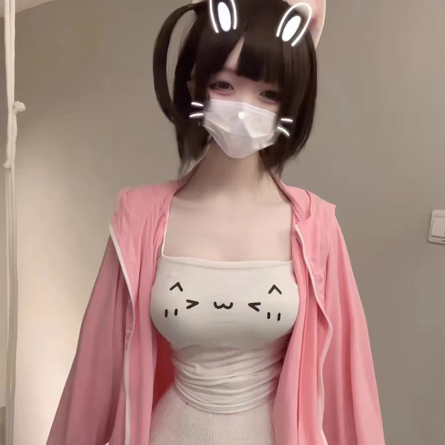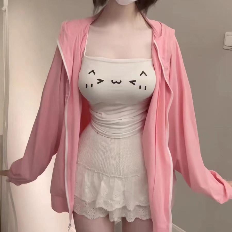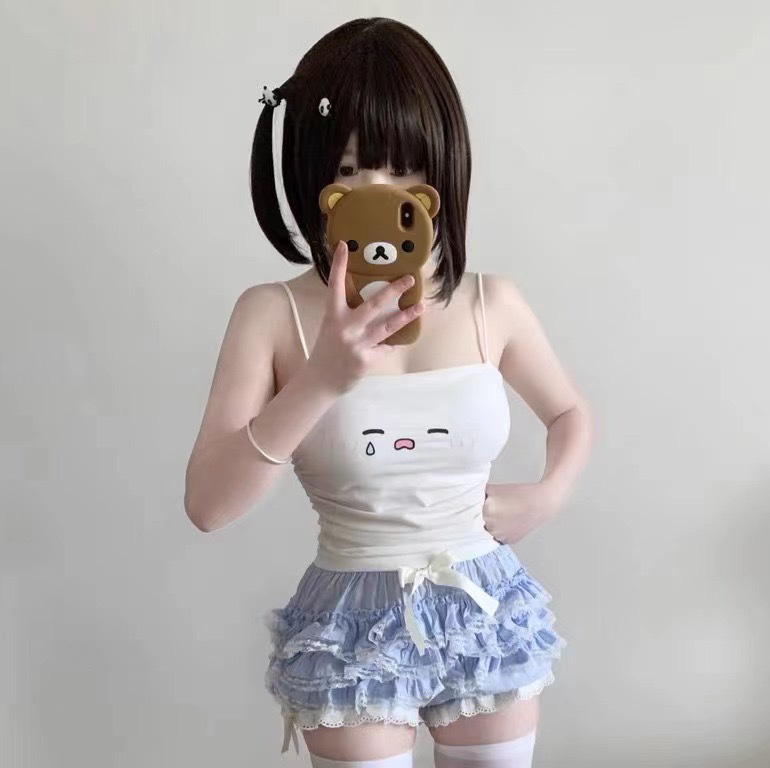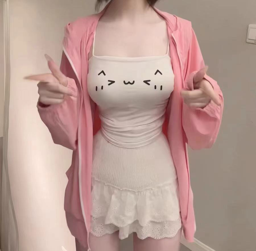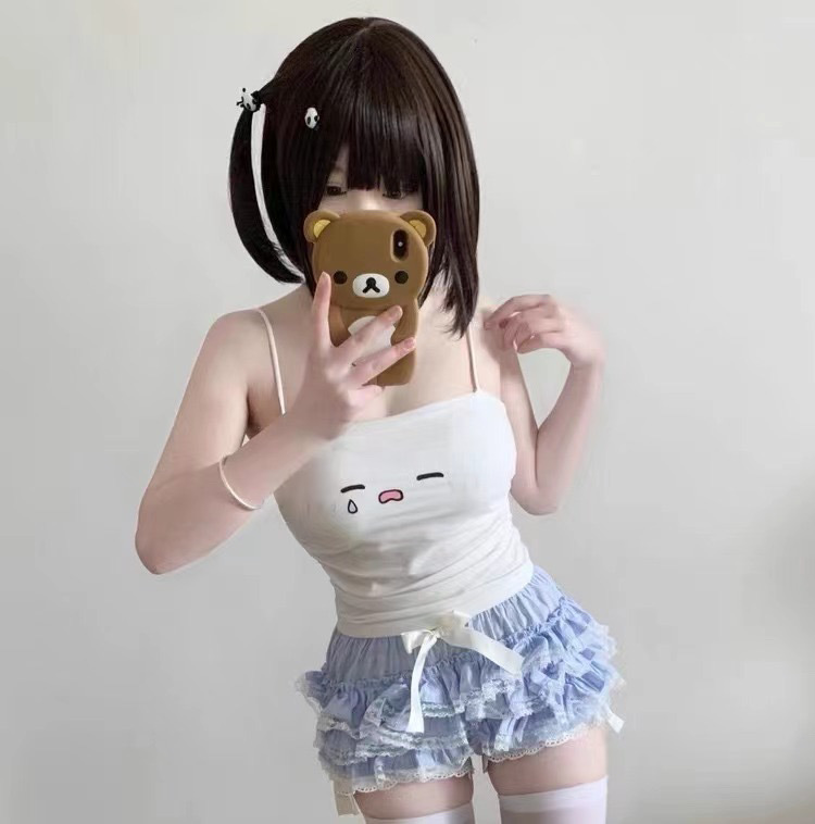 Emoji ウエストキャミソールガールショートスリムフィットトップ春夏かわいい白ボトムシャツ日本製