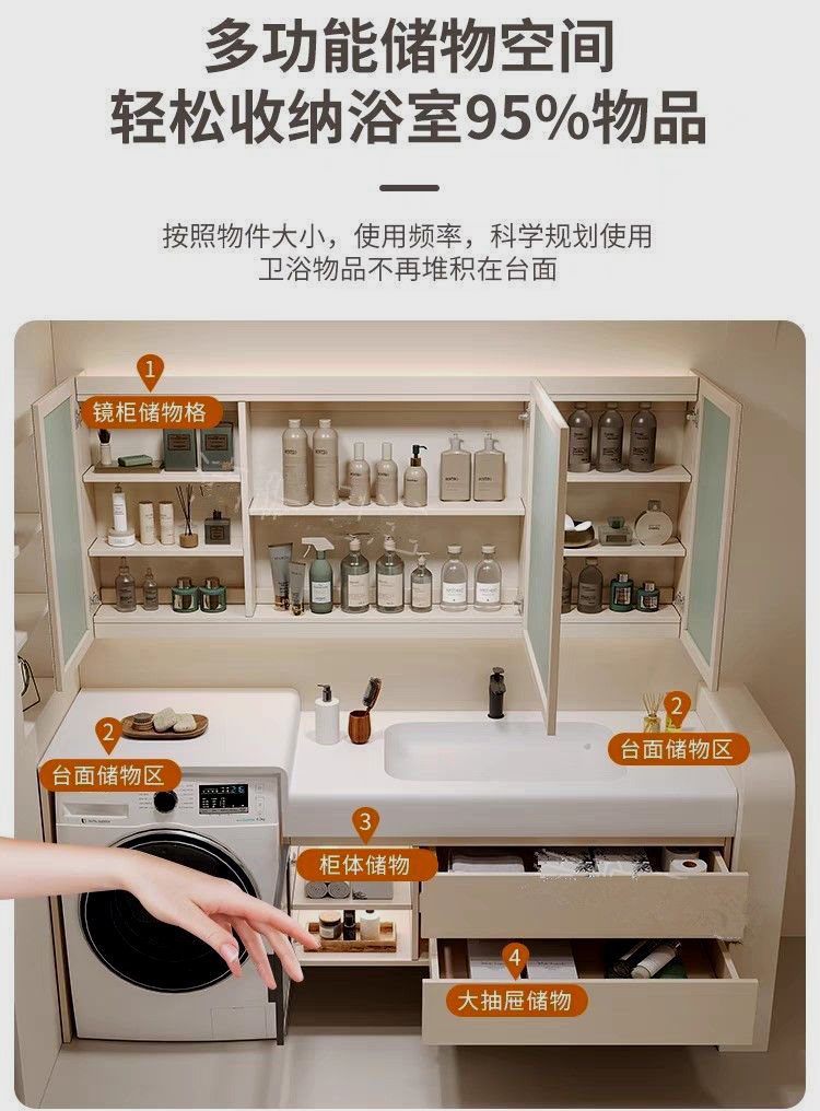 スレート シームレス洗面器 + スマート ミラー-120CM、スレート シームレス洗面器 + スマート ミラー-130CM、スレート シームレス洗面器 + スマート ミラー-140CM、スレート