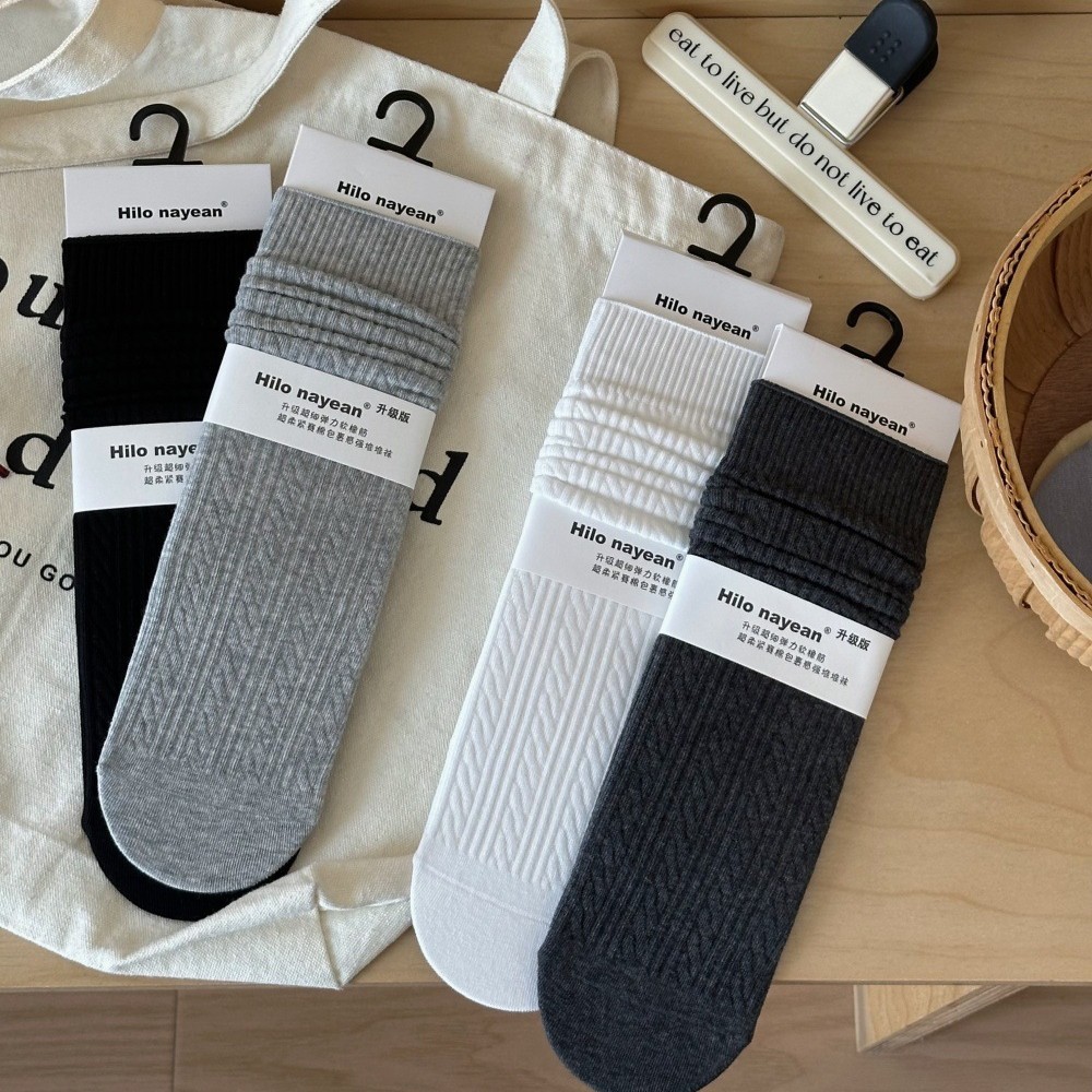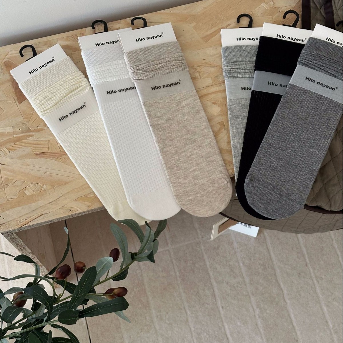 Hilo nayean袜子秋冬新款女袜中筒袜无骨韩系小包口堆堆袜女2659