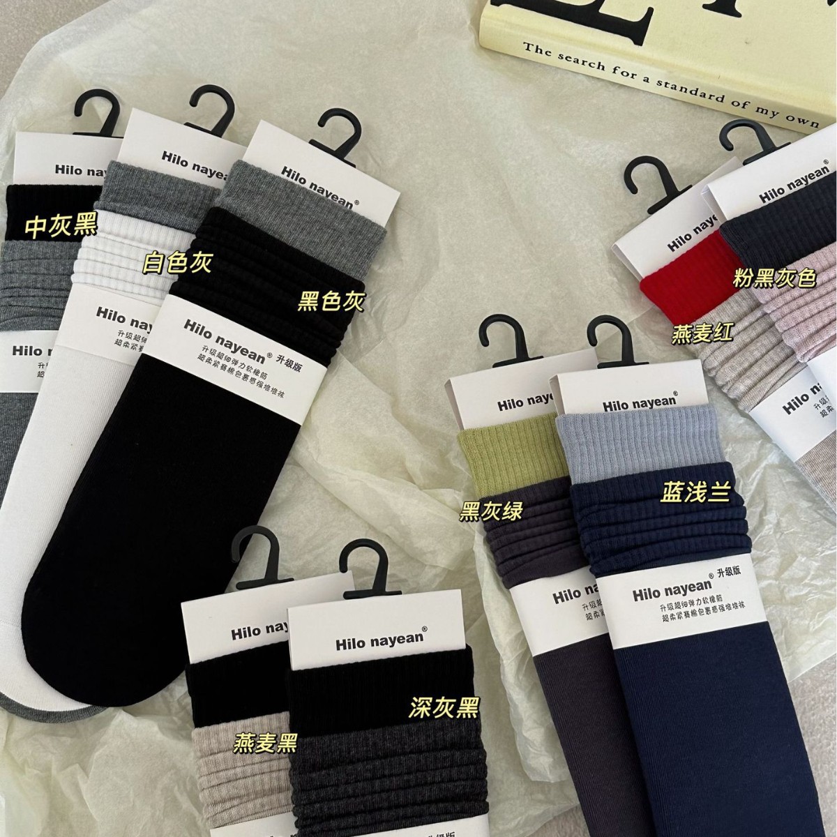 hilo nayean'秋冬25新品高橡筋双罗口撞色无骨中筒堆堆袜2656
