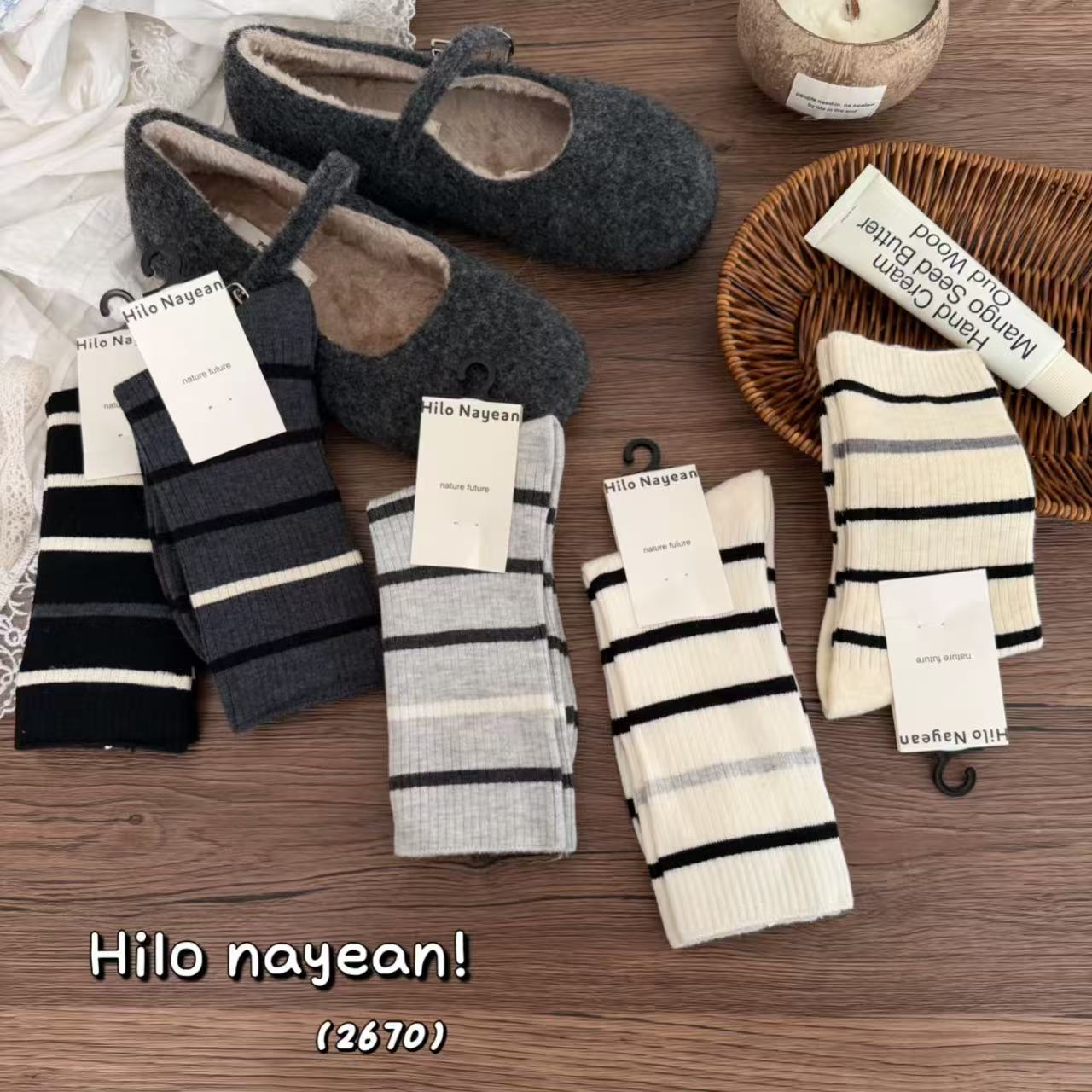 Hilo nayean南业秋冬加厚条纹羊毛中筒袜韩系简约羊绒袜女袜2670