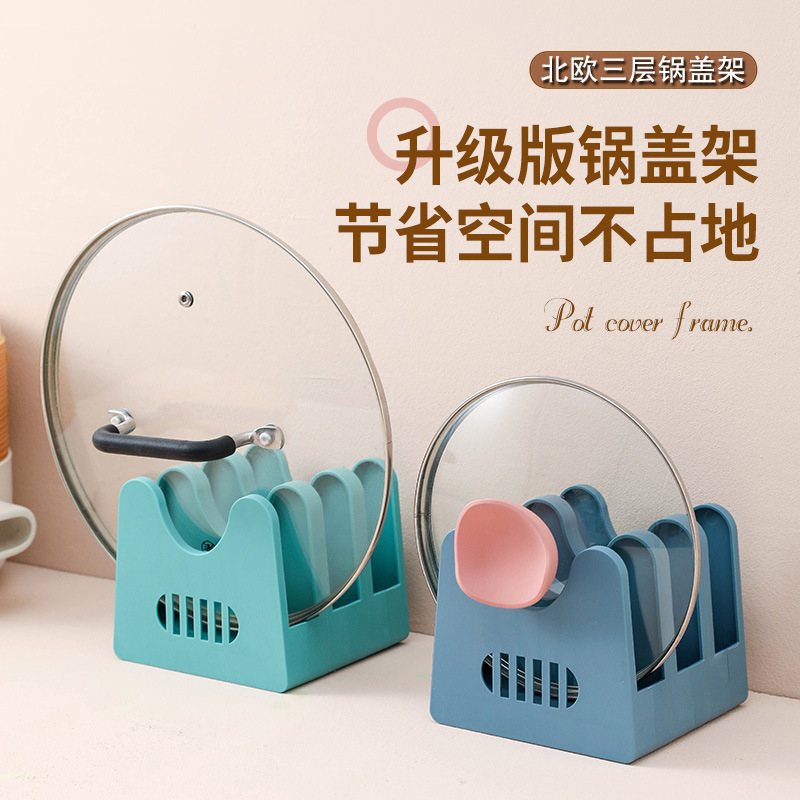 なべの蓋の棚の台所の収納の神器はなべの蓋の棚を置いて台の台のまな板の棚を支えます。