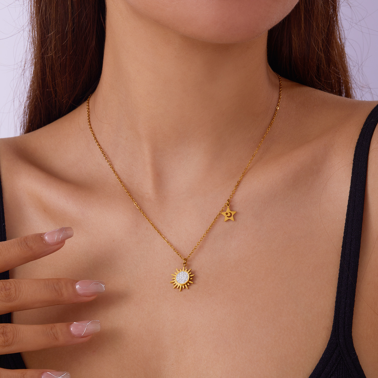 欧米ファッション紙カードネックレス創意合金太陽ペンダントネックレス女性ネックレス義烏メーカー現物卸売り