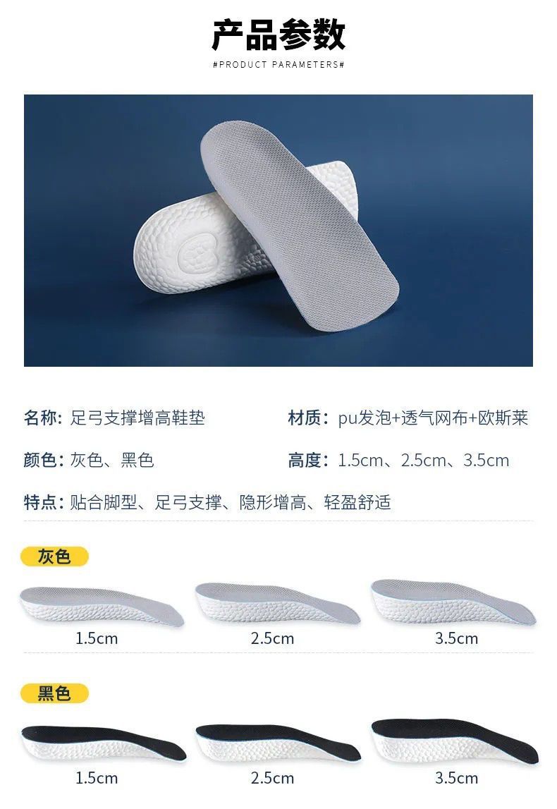 冬用の男性と女性用の7点身長を伸ばすインソール、目に見えないインナー身長を伸ばすパッド、ハーフパッド、マーティンブーツアーティファクト、ソフトソール、衝撃吸収アーチパッド