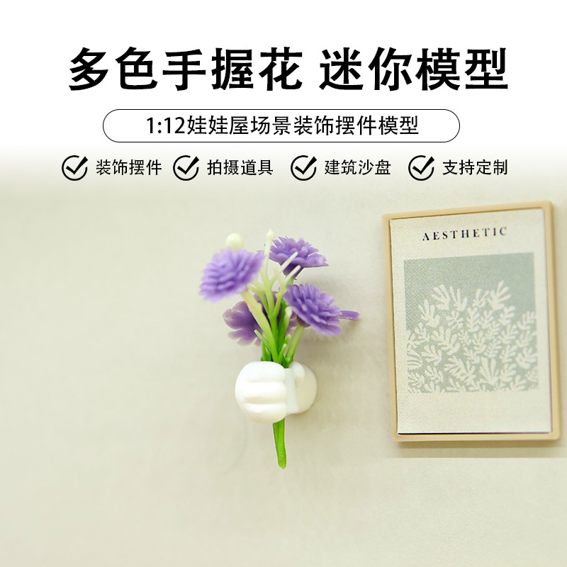 娃娃屋微缩场景摆件手握花微缩模型仿真壁挂装饰花立体墙面绿植