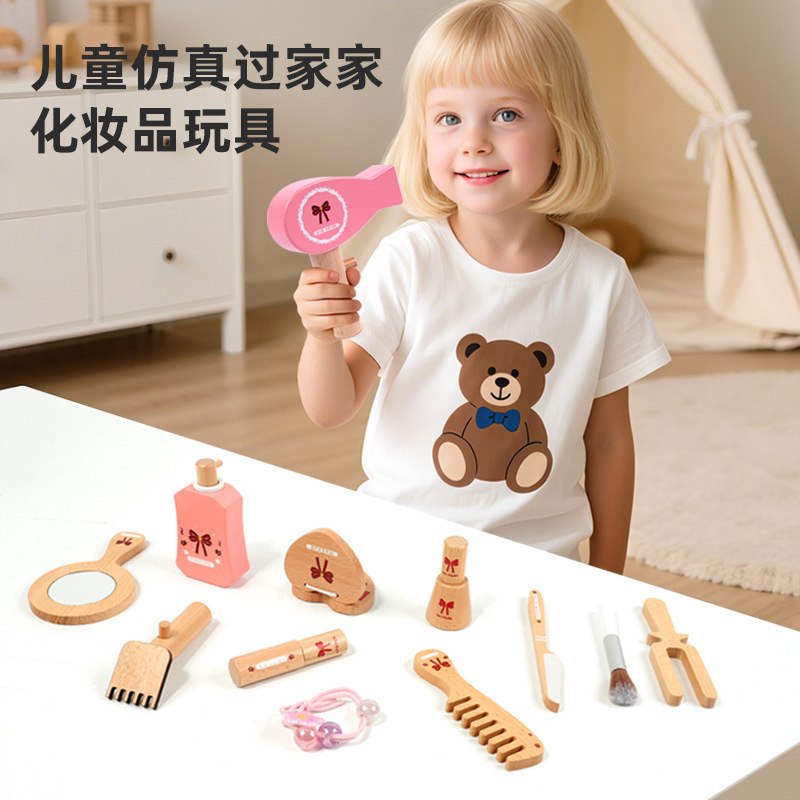 跨境木质仿真化妆包理发套装梳妆台儿童角色扮演过家家益智玩具