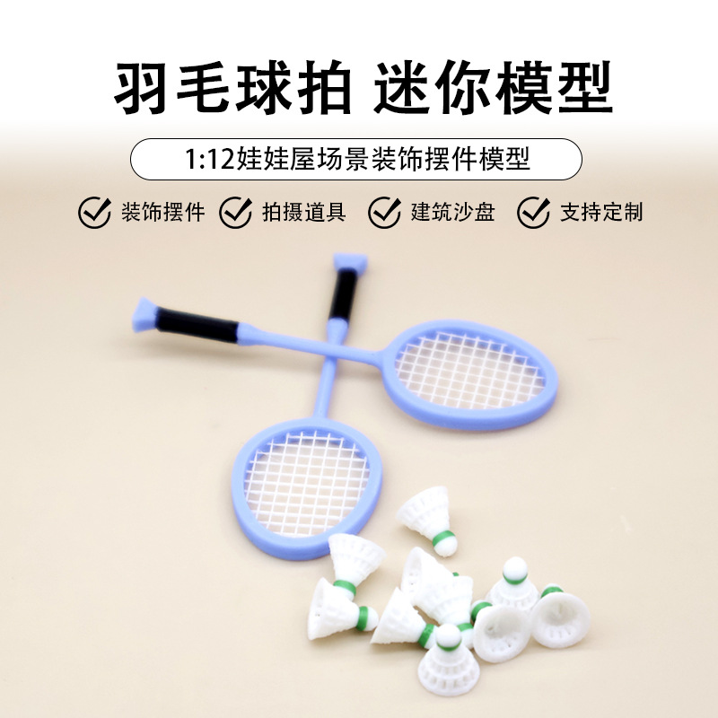 迷你袖珍羽毛球球拍模型娃娃屋迷你运动品微缩羽毛球拍过家家玩具