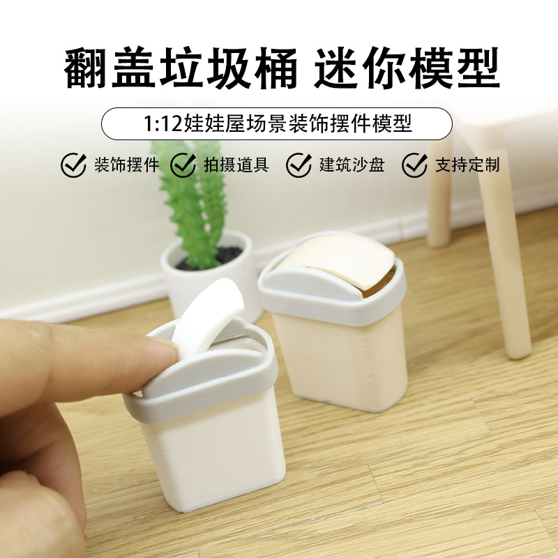 1:12娃娃屋dollhouse迷你家具模型食玩 翻盖垃圾桶仿真垃圾桶模型