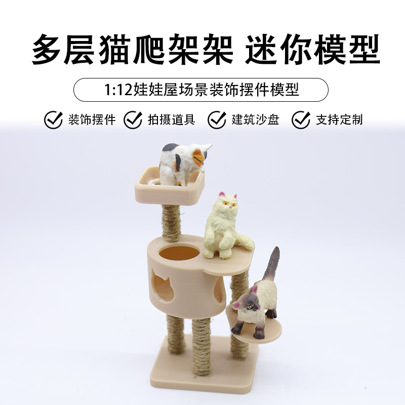 1:12dollhouse娃娃屋迷你仿真多层猫爬架猫咪玩具微缩场景模型