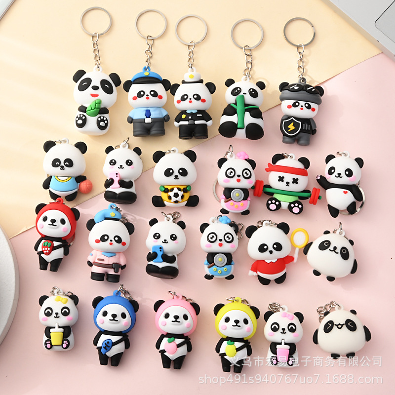 パンダのキーホルダーのアニメのぬいぐるみのペンダントは多くの種類のパンダのペンダントを卸売りします。