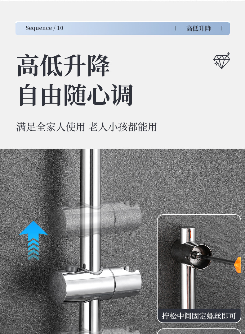 リフトロッドシャワーアクセサリーシャワーヘッドブラケットバスルームレインシャワーヘッドステンレス鋼調整可能な固定ロッドアップグレードモデル