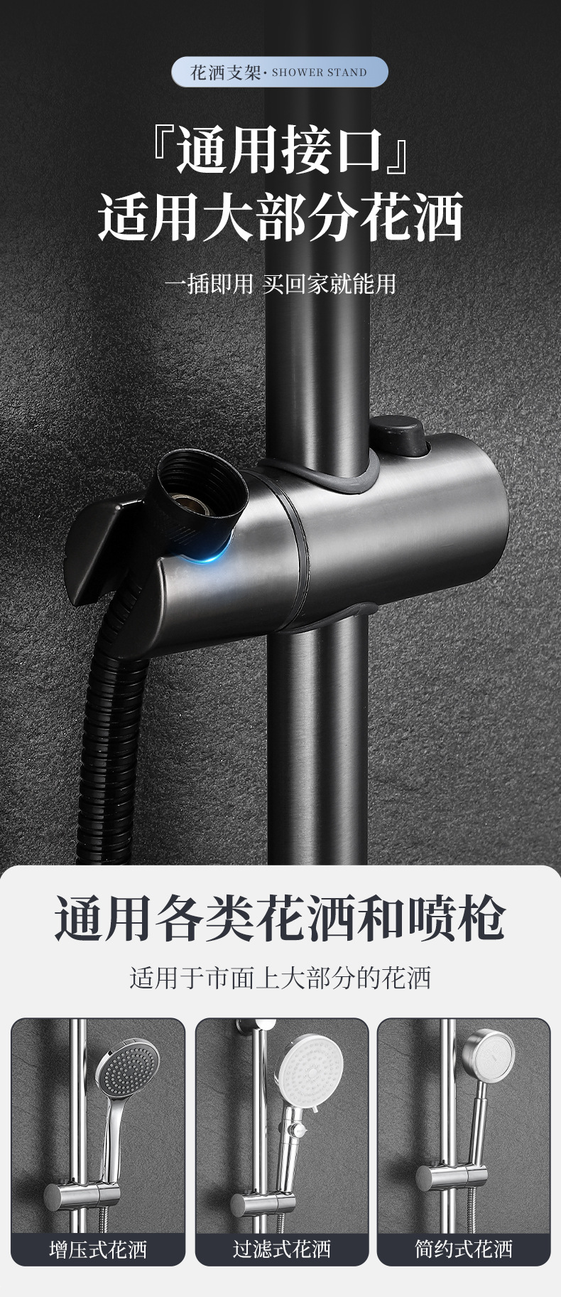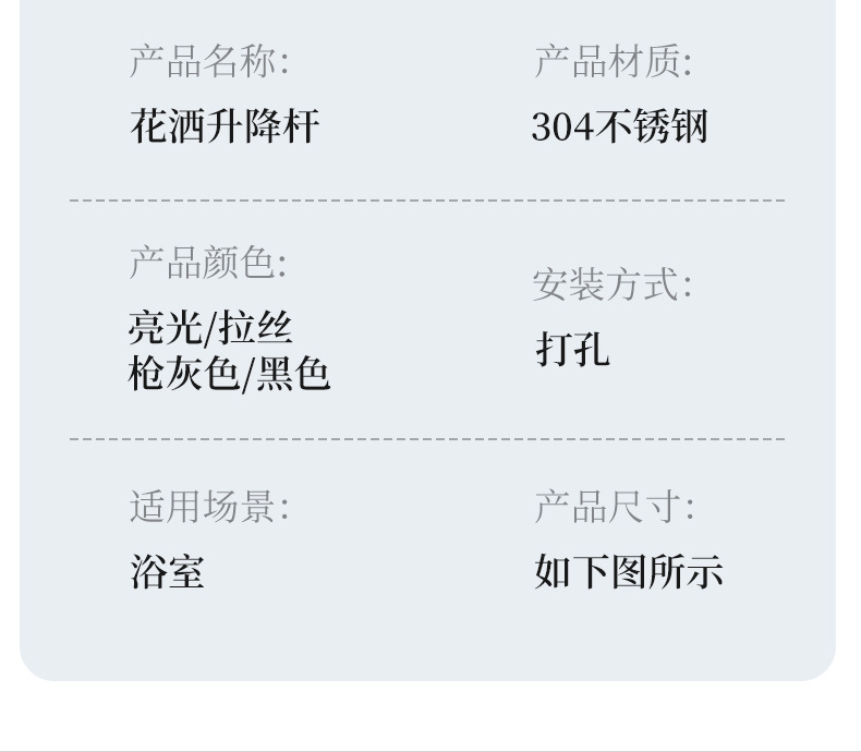 開平304ステンレス線引き金シャワーバー花撒き銃灰昇降バー簡易黒色浴室花撒きブラケット