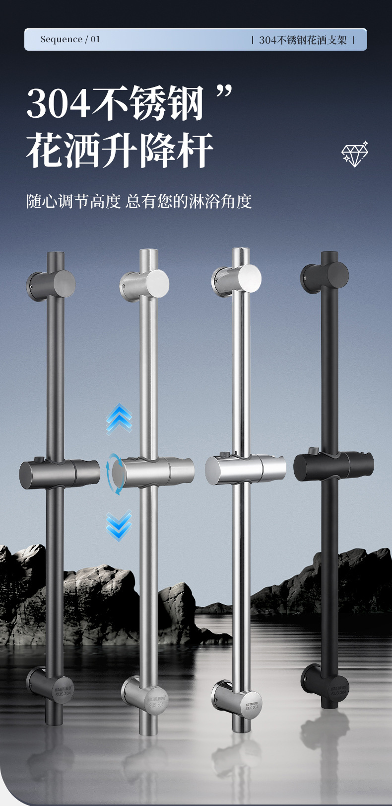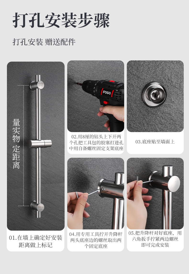 外国貿易クロスボーダー304ステンレス鋼シャワーヘッド固定ブラケット調整可能なシャワーリフトロッドバスルームアクセサリー
