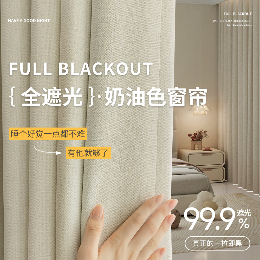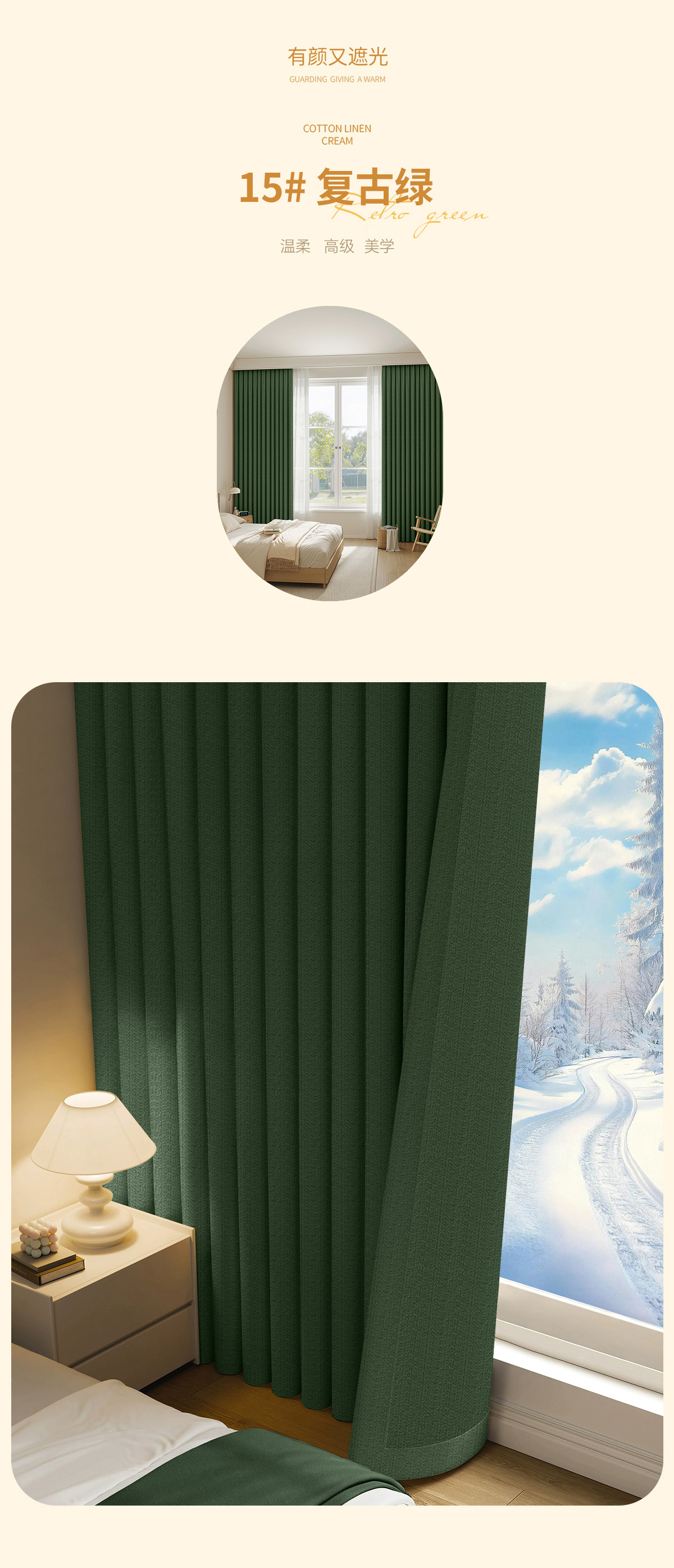 カーテン全遮光寝室綿麻断熱日焼け止め小細麻2025新型窓新日除け布卸売り