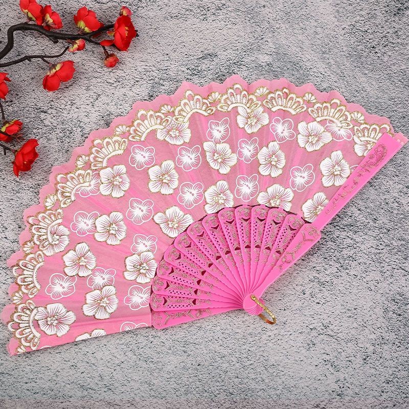 箔押し蝶扇透かし彫り中国風古風チャイナドレス女性の花の縁扇ダンス漢服扇折り扇夏の女性