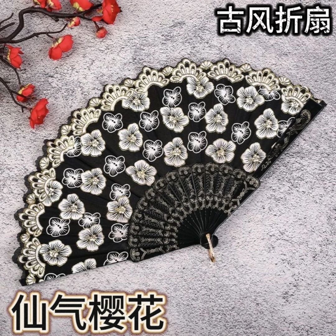 ロリータ単層レースレース扇新中国式古典チャイナドレスショー写真折り扇暗黒系中華女神