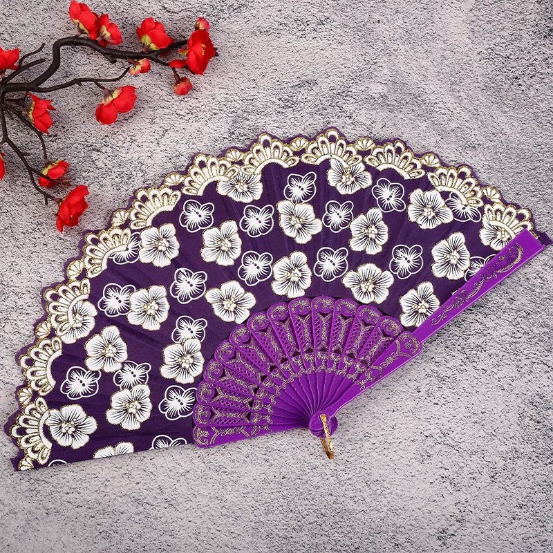 単一の花柄のヨーロッパ風金粉折りたたみダンス扇子、レトロ扇子、プラスチック製スペイン扇子、自社工場、図面・サンプル対応