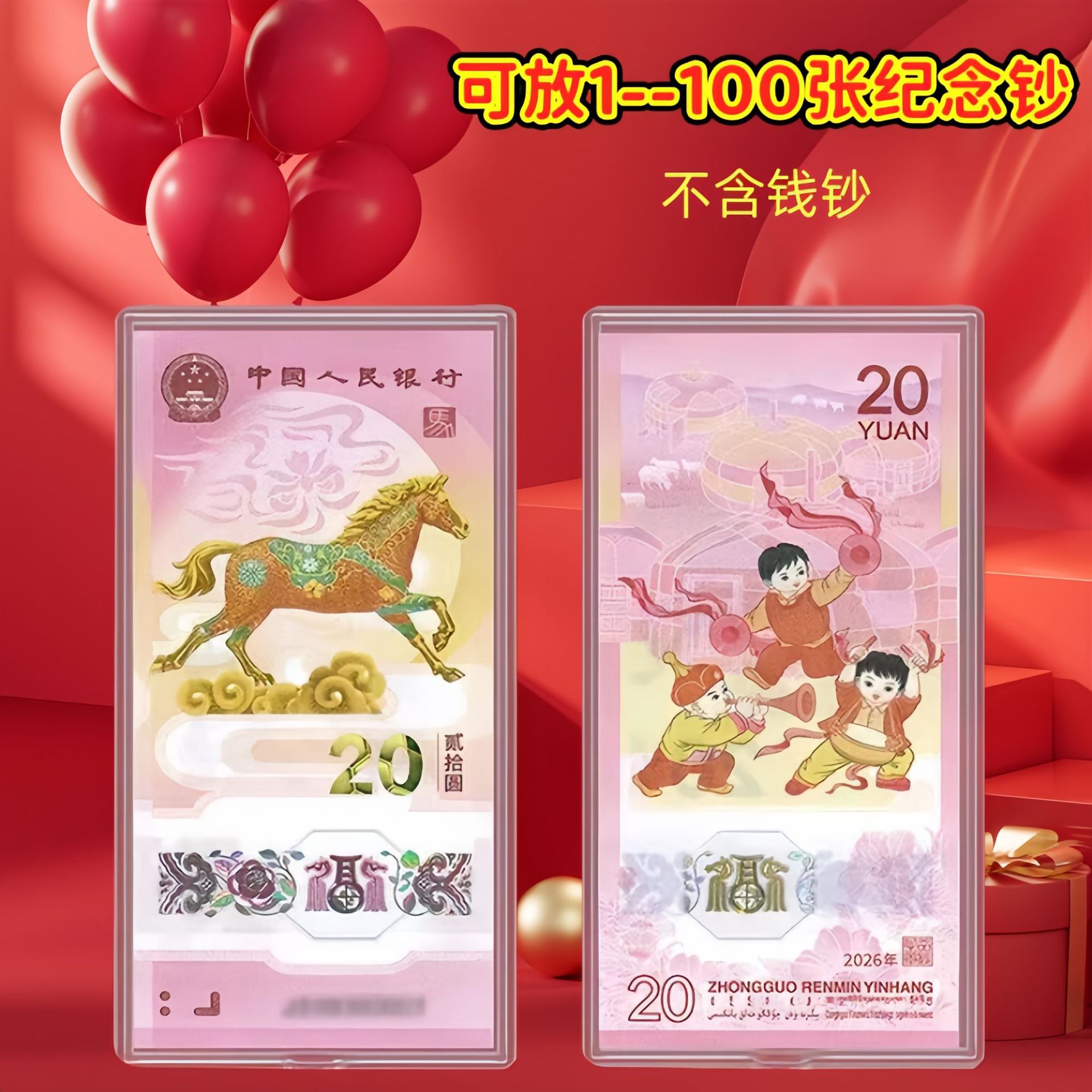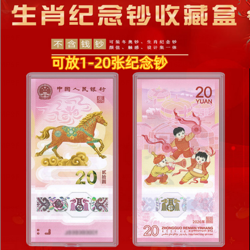 2026马年钞纪念钞纸币整刀纸币盒龙年20元人民币透明盒保护盒
