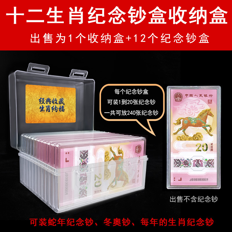 12生肖龙马年纪念钞保护盒单张纸币收藏盒钱币20张收纳盒立牌空盒