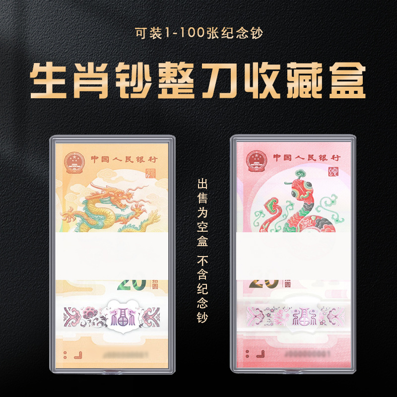 蛇年龙年生肖纪念钞整刀100张装刀币盒20元纸币收藏盒蛇钞保护盒