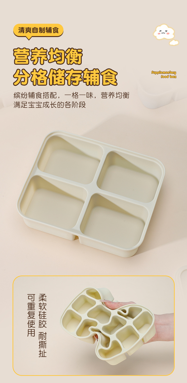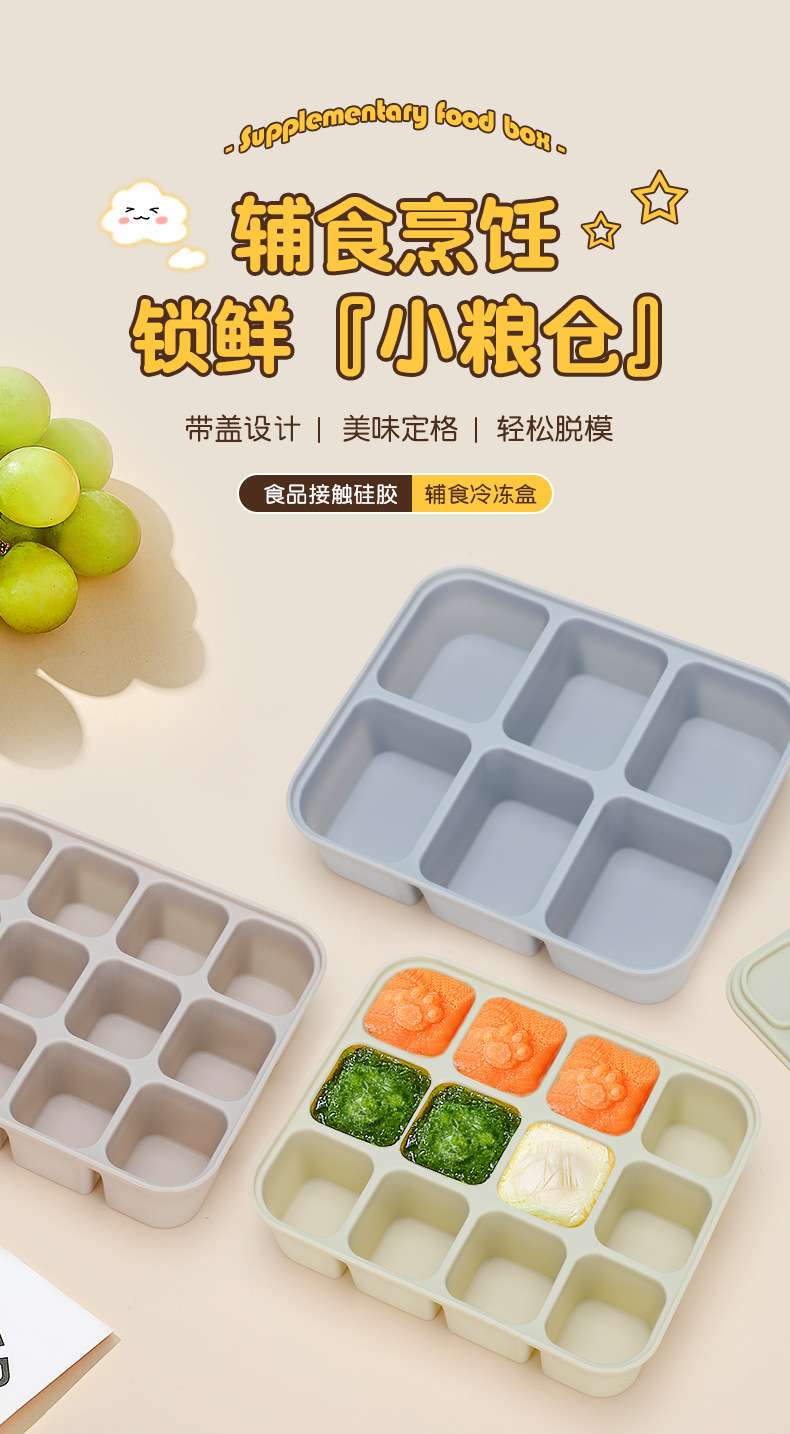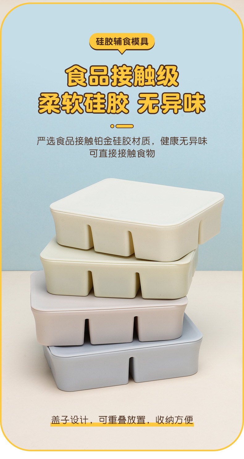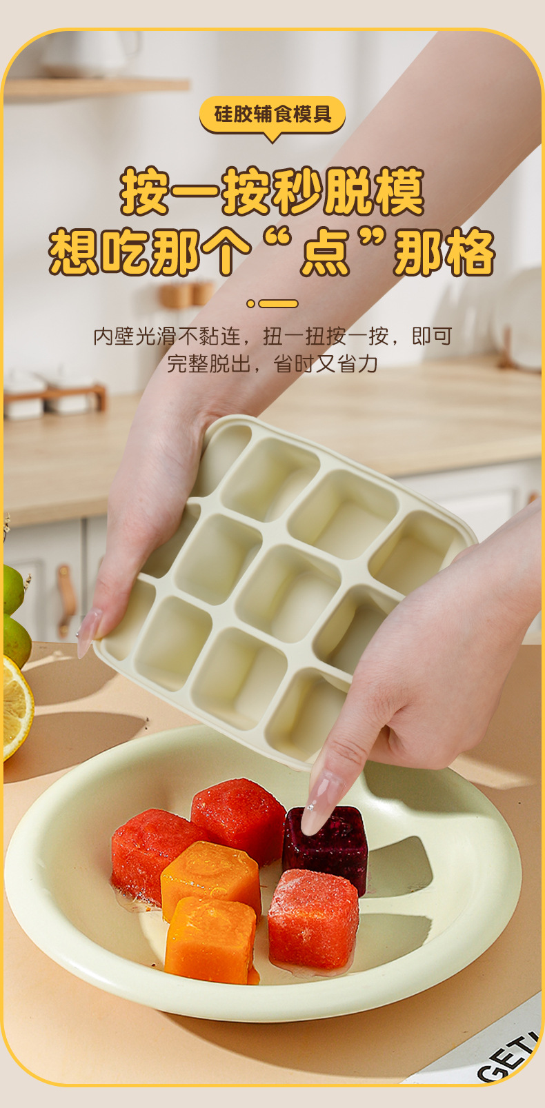 ベビー補助食品ボックス家庭用食品級貯蔵冷凍氷金型耐高温蓋付き多格ソフトシリコンアイス