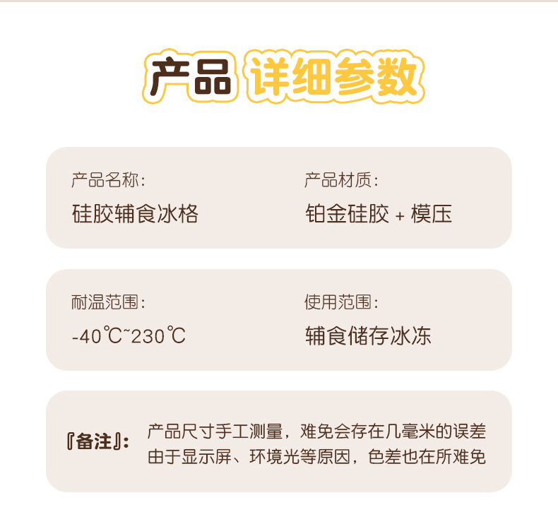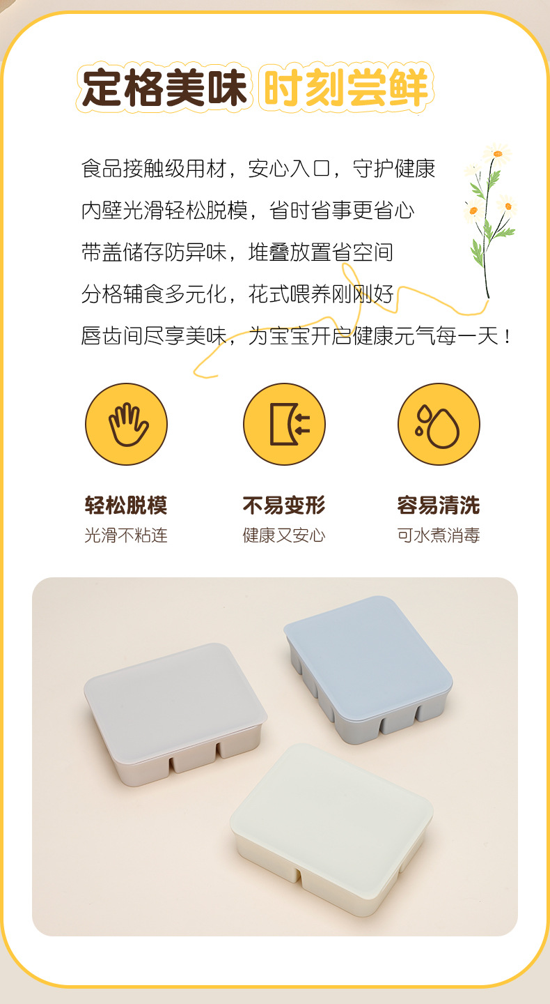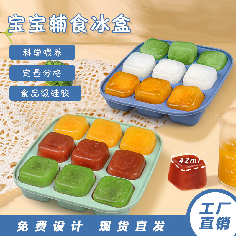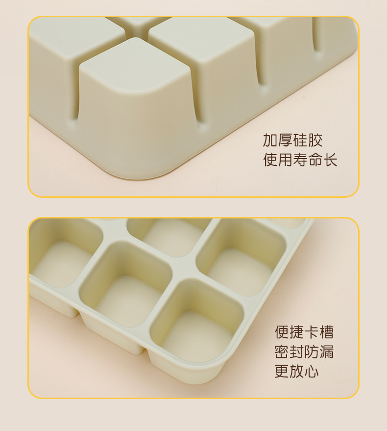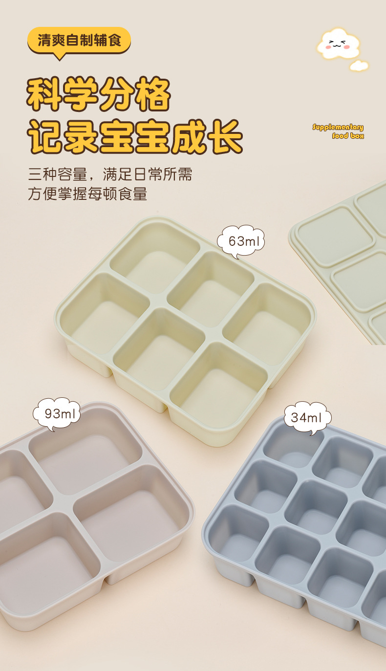 ベビー補助食品ボックス家庭用食品級貯蔵冷凍氷金型耐高温蓋付き多格ソフトシリコンアイス