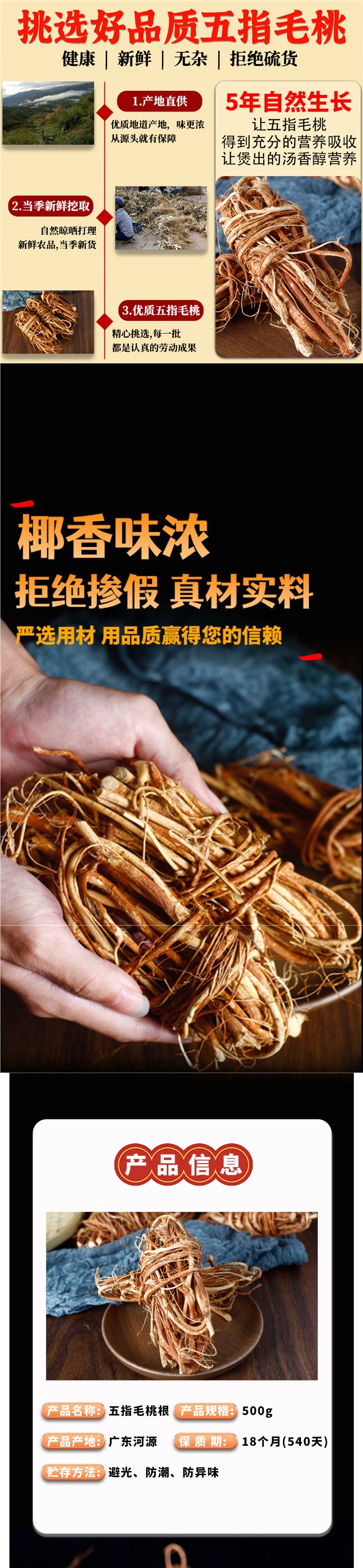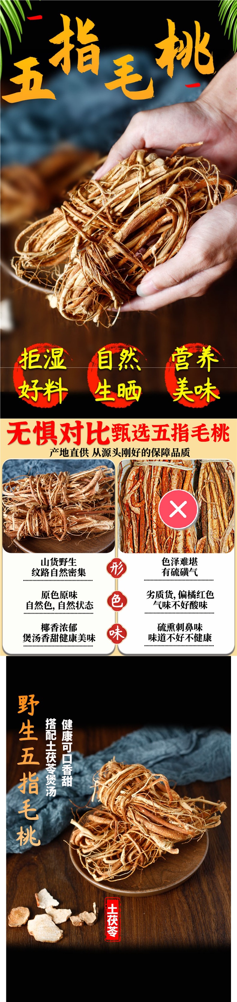 広東省五本指桃野生スープの素、五本爪龍河源特産品、乳根、土茯苓、乾物、ワイン漬け