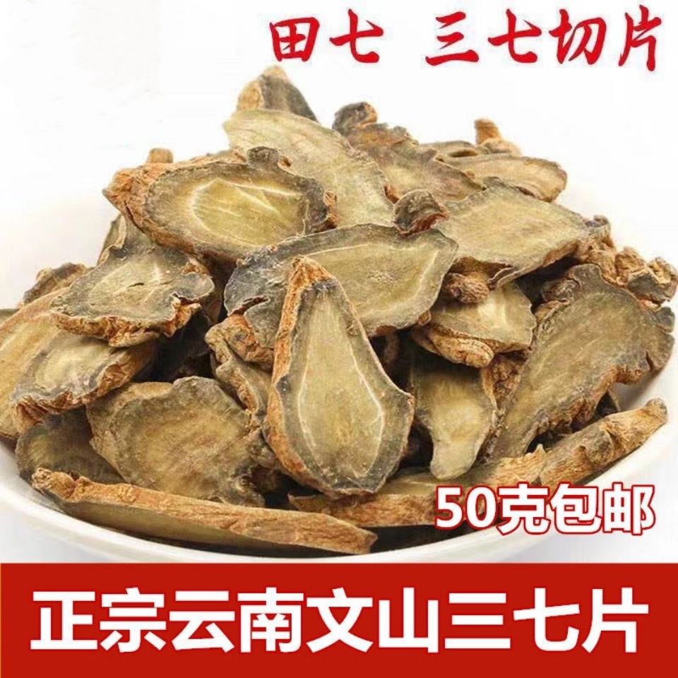 云南文山春三七自然晒干整个切片20头切片田七片包邮代磨粉多包邮