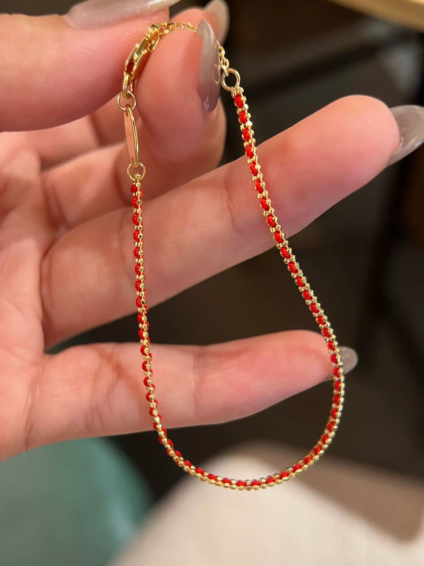 小红书爆款新年高配小红绳手链女精致排钻红宝本命年手环送女友