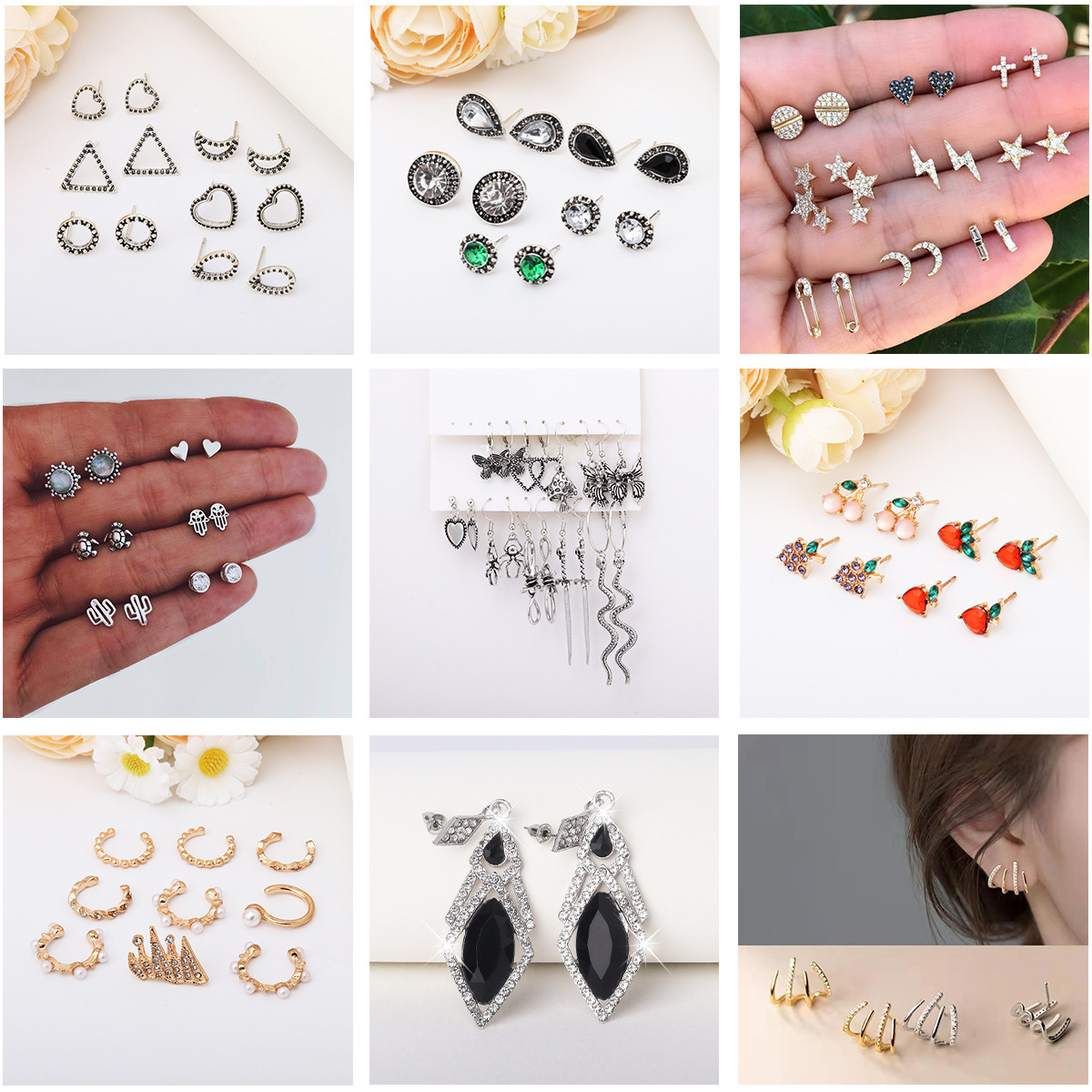 欧美ins爱心蝴蝶耳环套装女 复古创意耳坠套装水果耳钉耳饰品批发