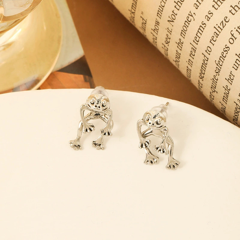 欧米のクロスボーダーの装飾品の個性の復古の銀はカエルのピアスをからかって立体動物のイヤリングのイヤリングの女性を取り外します。