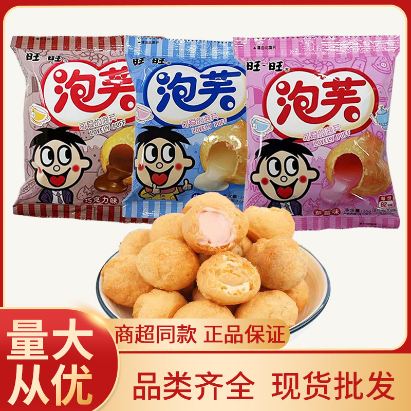 旺旺16泡芙牛乳チョコレート箱全体卸売り児童間食いちごレジャーサンドイッチ箱全体