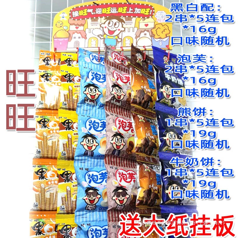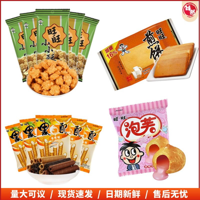 8090后怀旧经典旺旺旺仔泡芙球夹心饼干黑白配蛋卷连包成串小零食