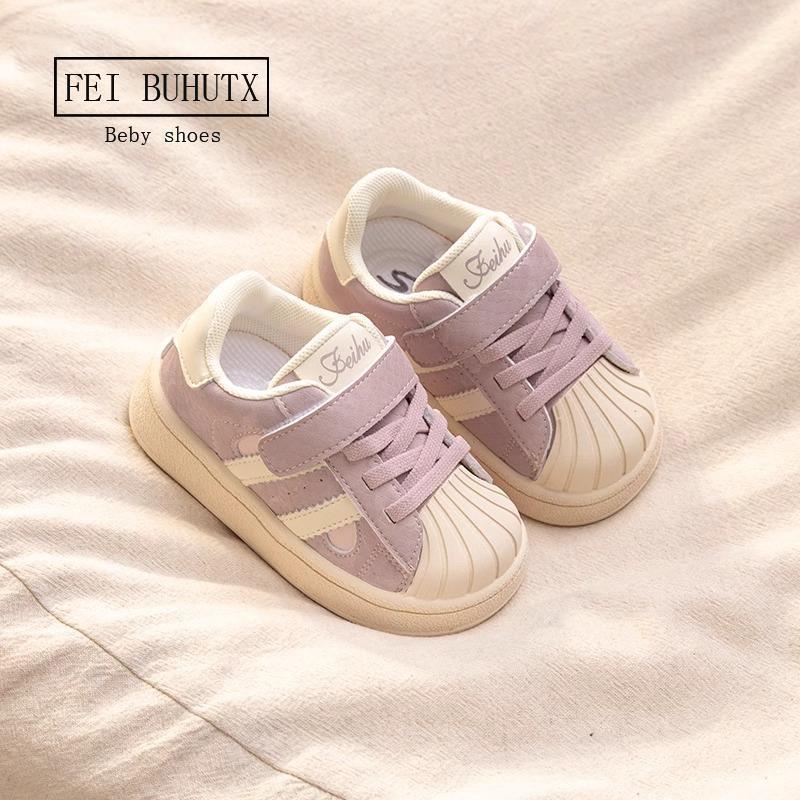 女の子の板靴の柔らかい底の滑り止めの子供の貝の殻のレジャーの運動靴の子供の赤ちゃんの靴の春秋のタイプの学歩の靴