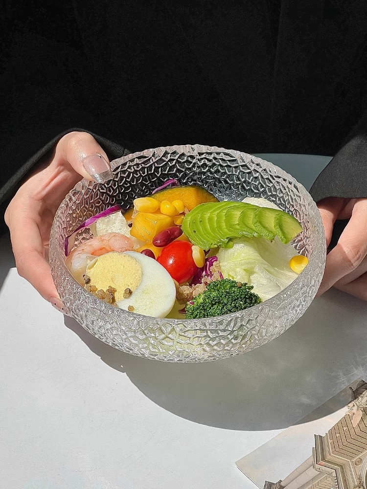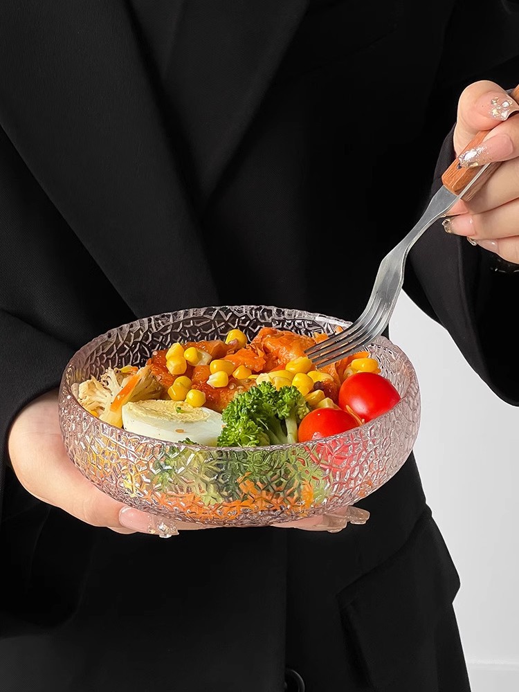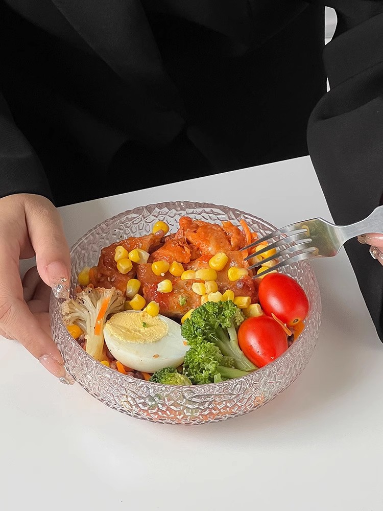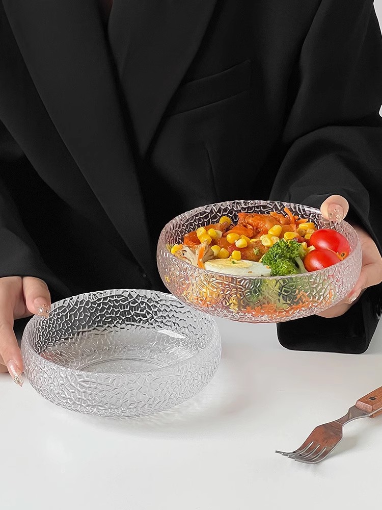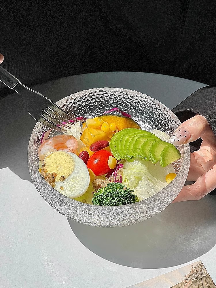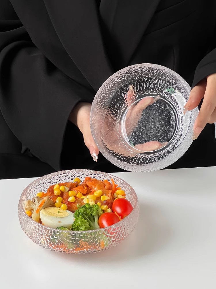 Ins風和風ハンマーガラスボウル果物皿デザートボウルサラダボウル和え前菜ボウル家庭用高級感果シリンダー