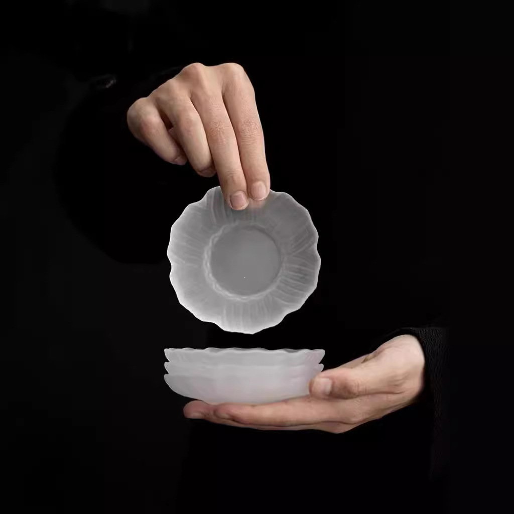 中国式のガラスの氷の工芸のお茶の皿は軽くて豪華です。