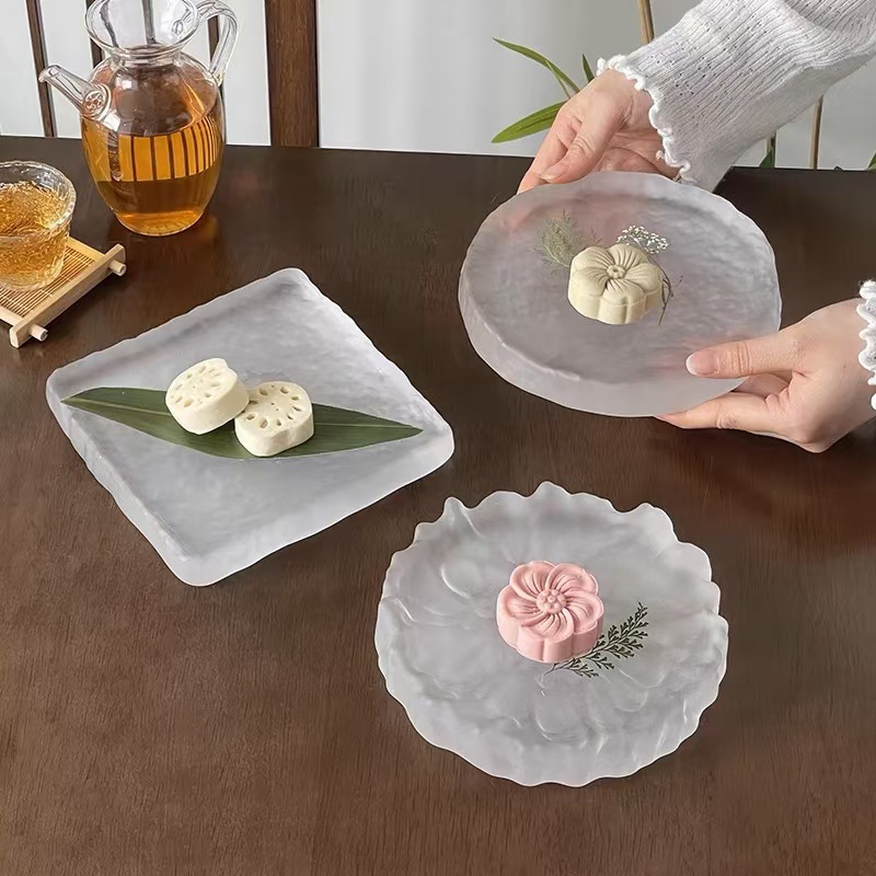 Ins風氷河ガラス朝食皿果物皿クリエイティブネット赤ソース皿家庭用お菓子洋食皿