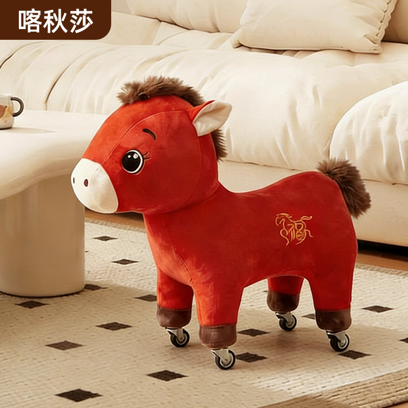 小马凳万向轮滑轮凳子马年吉祥红色矮凳生肖儿童凳万向轮马年坐凳