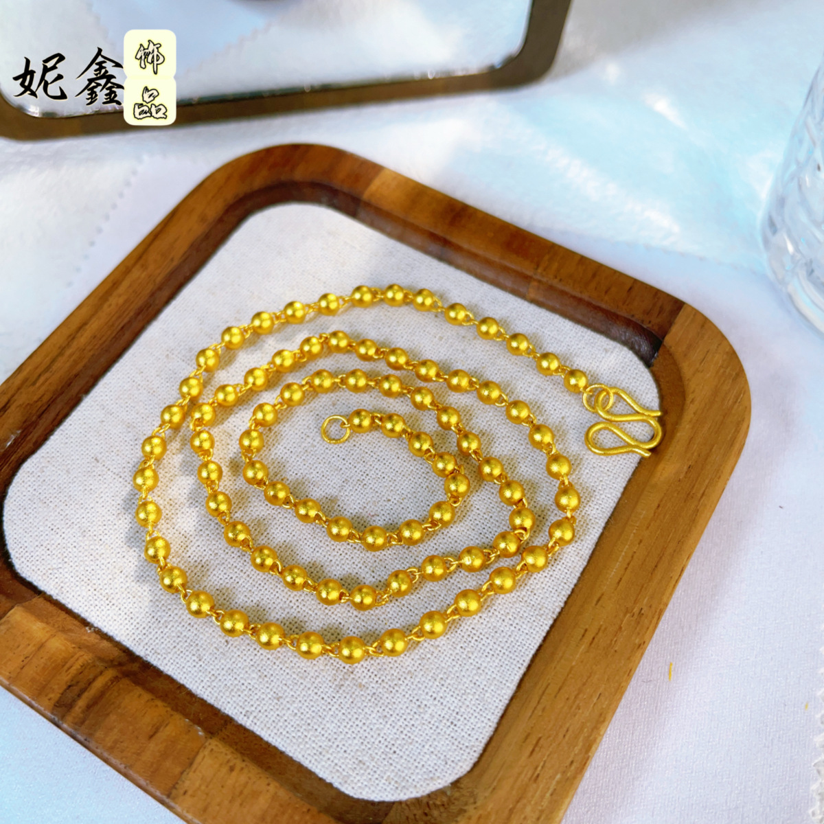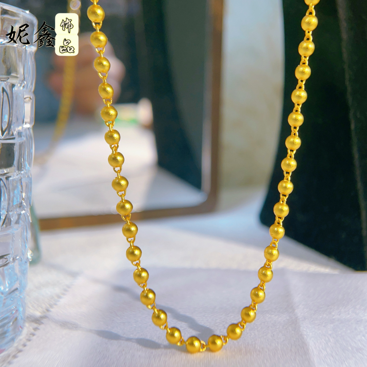 ネットの赤い女性の爆発物の砂の金色の光沢の面の中実の4mmの精致なビーズのチェーンのボールのネックレスの軽くて豪華な高級感の卸売り